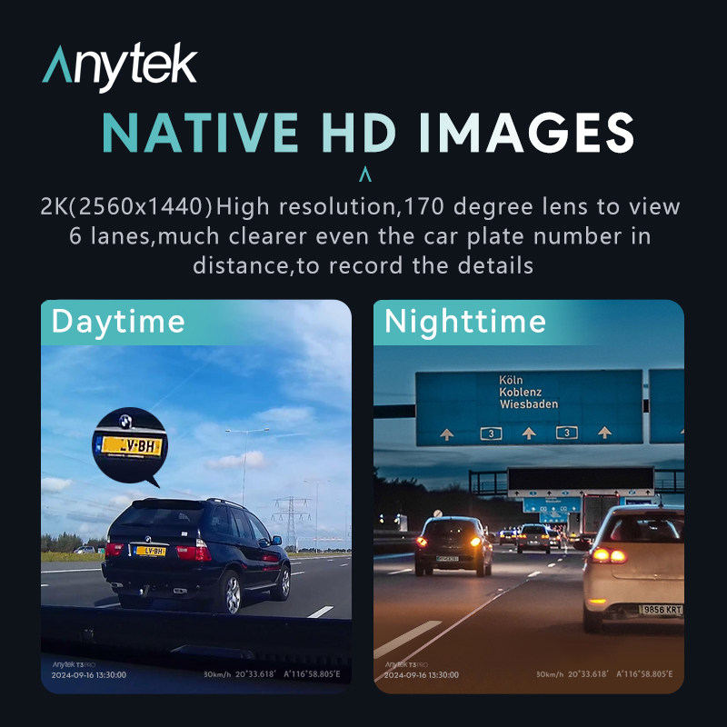 ANYTEK T3Pro 2K+1080P Dash Cam WiFi 24H Parking Monitor - 好易购数码科技