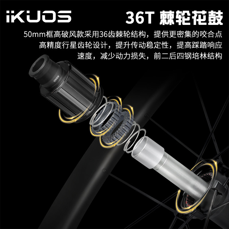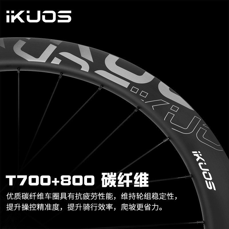 IKUOS碳纤维轮组700C碳刀公路自行车开口碟刹50/55/65MM破风轮毂 - Dream梦幻单车