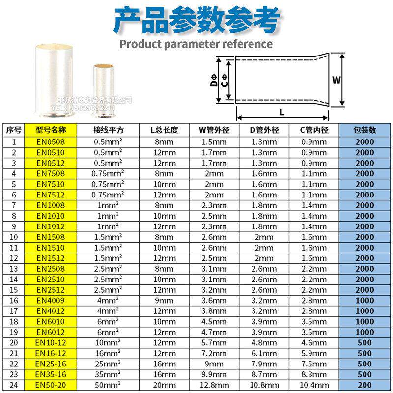欧式EN管型裸接线端子 EN0508 7508 1008 4012 6010插针冷压端头 - 奕嗨拍顶拆专卖店