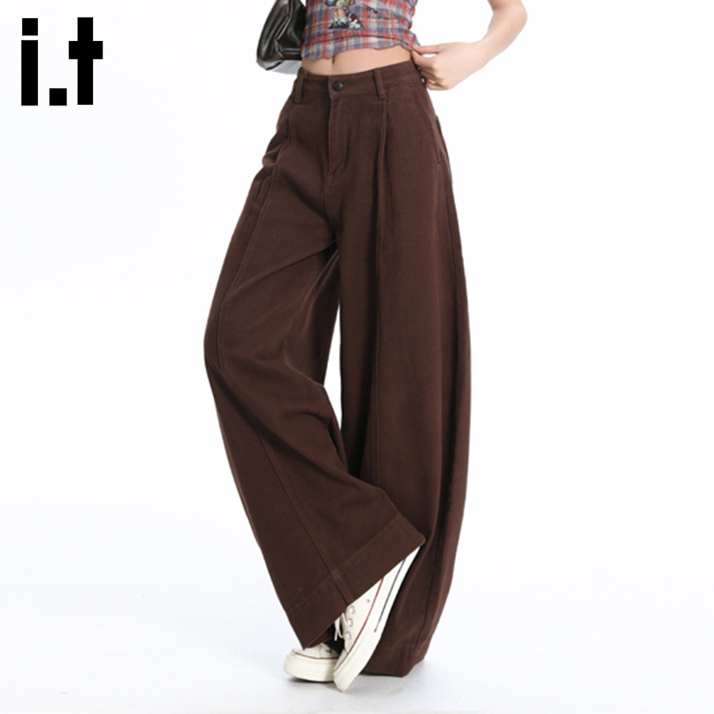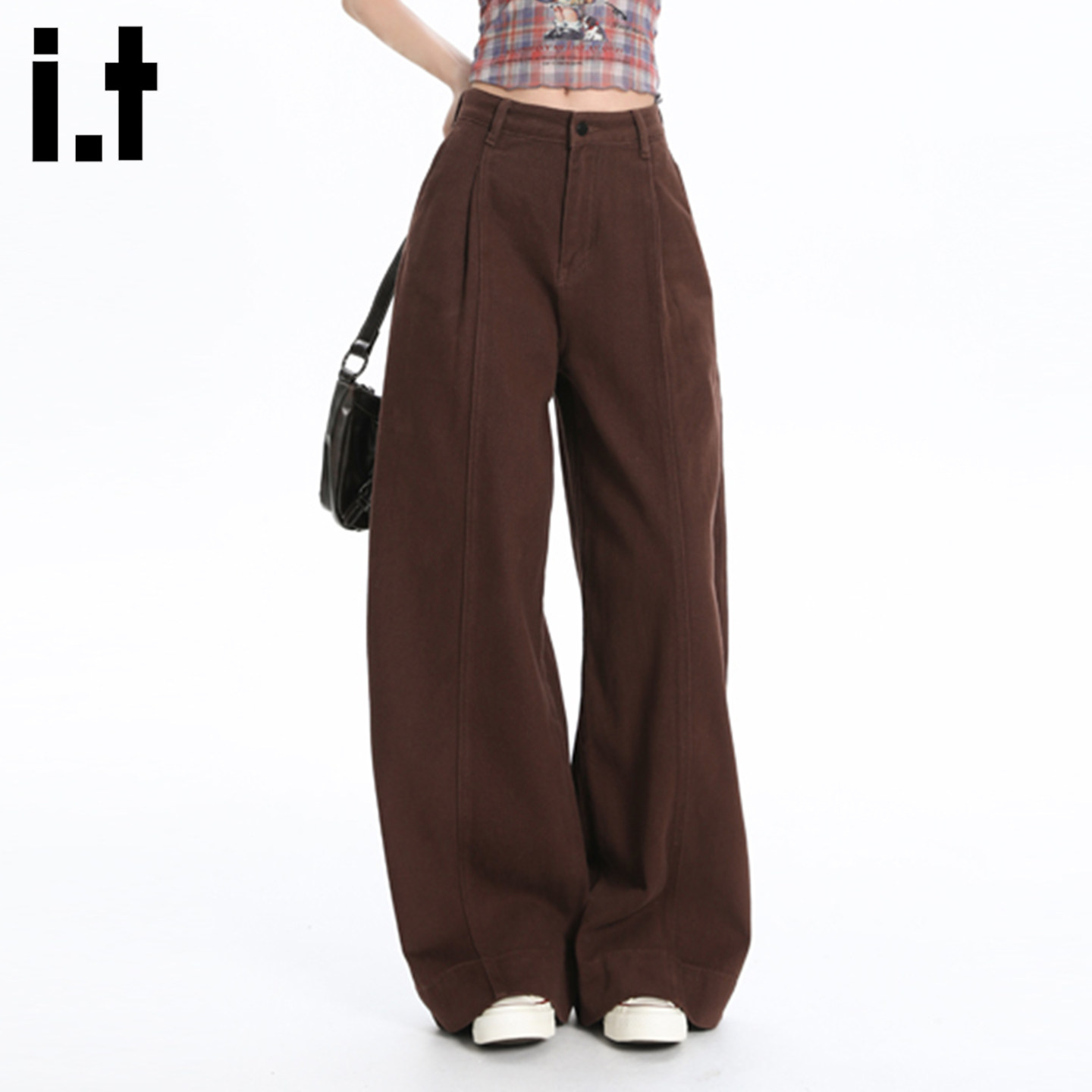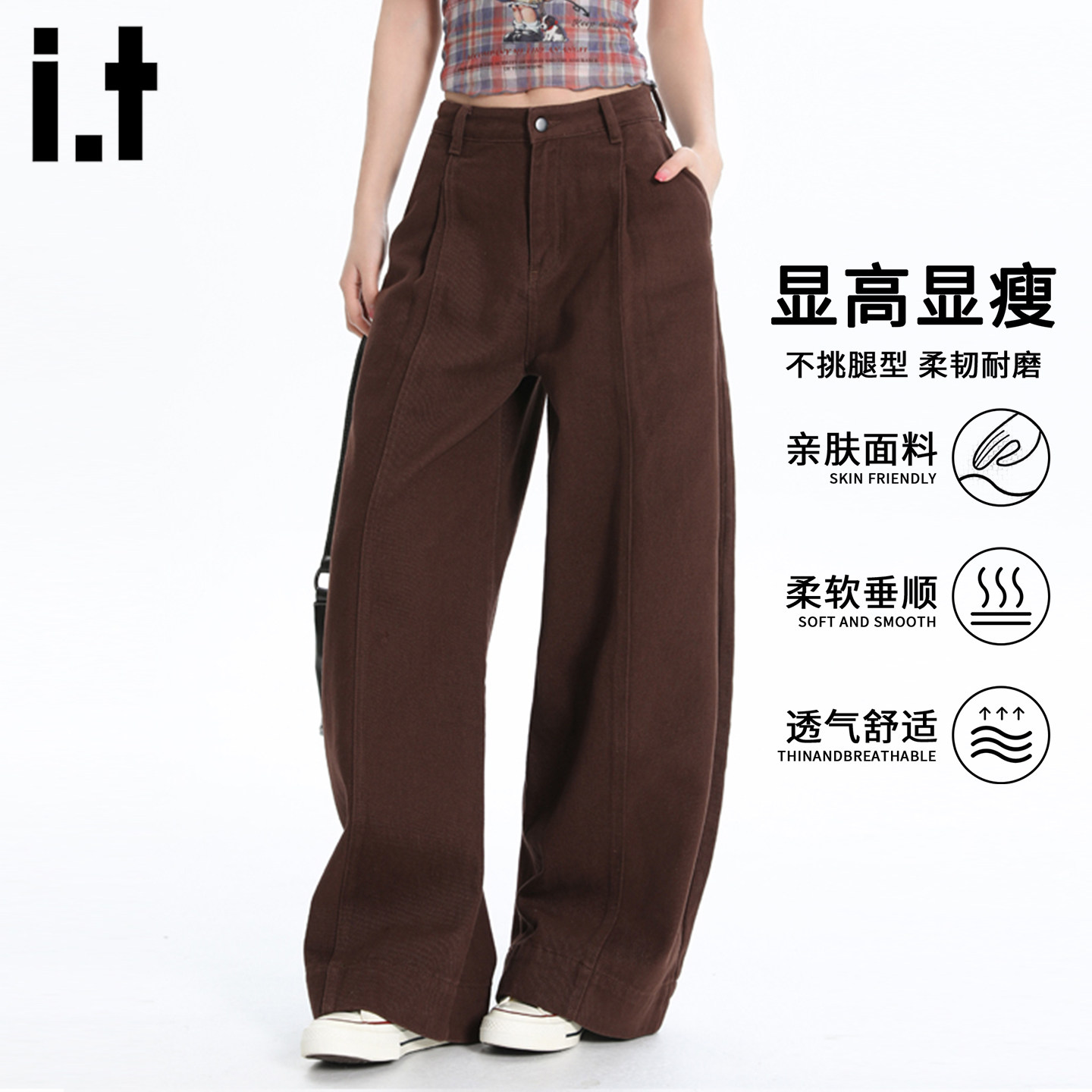 it FIVECM老钱风纯色弯刀阔腿牛仔裤女夏季高腰显瘦宽松垂感长裤 - FIVE CM官方旗舰店