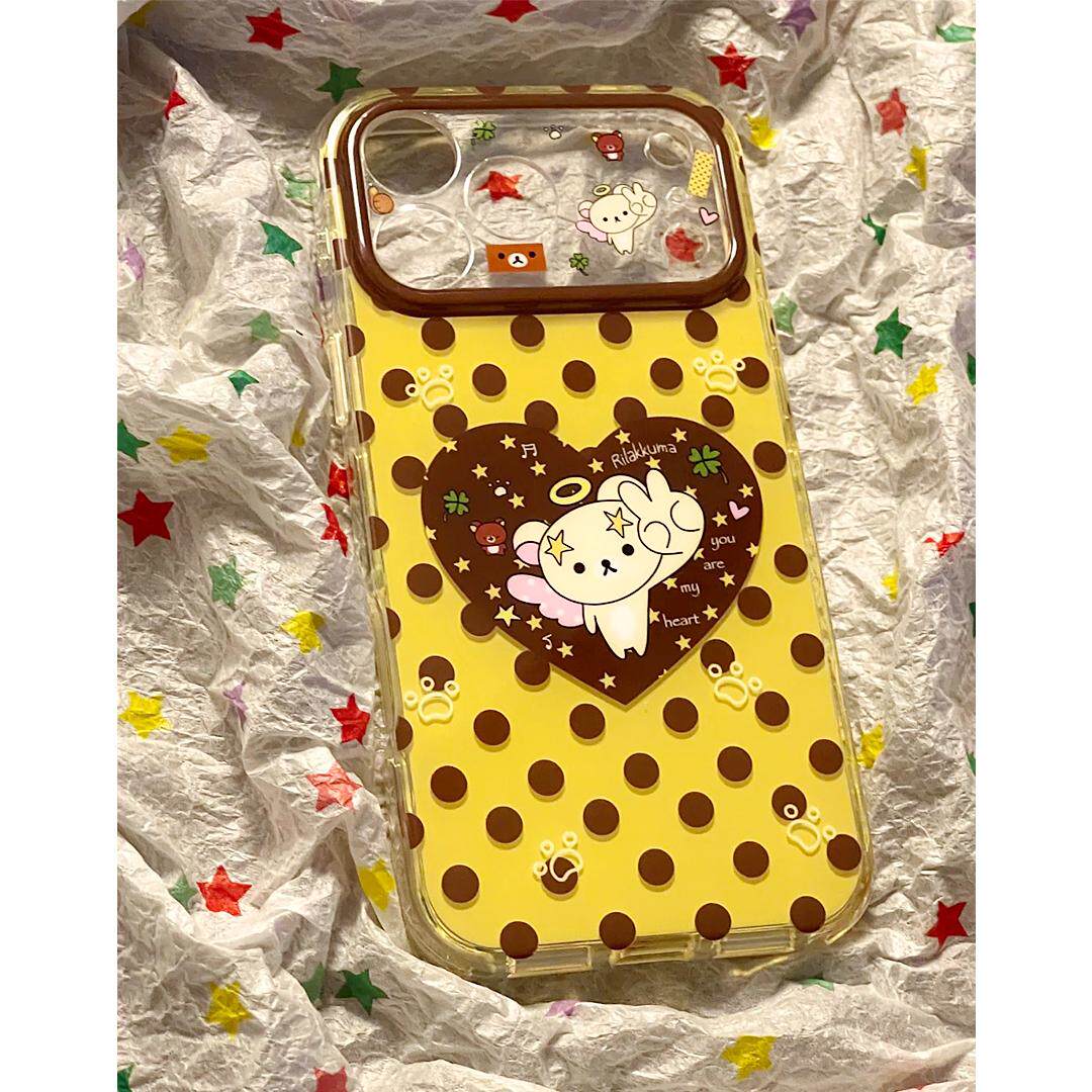 棕波点爱心轻松熊适用于17iPhone17promax/16plus/15pro手机壳苹果13白色精孔ip17AIR新款12PROMAX11保护套15 - 班港数码旗舰店