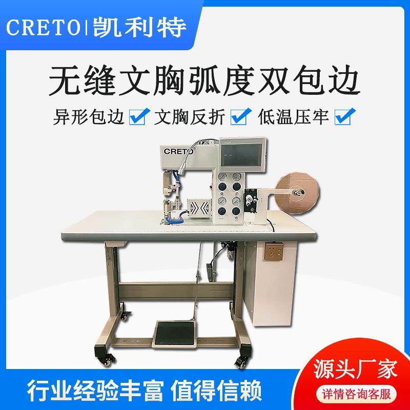 服装无缝无痕文胸棉杯运动围贴胶弧度异形反折双包边压胶贴合设备 - 珅联机械制造