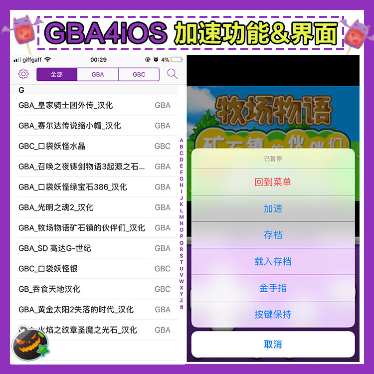 GBA4iOS苹果iOS用GBA模拟器口袋妖怪激进红剑盾铠之孤岛牧场物语 - 酱油扣扣小店
