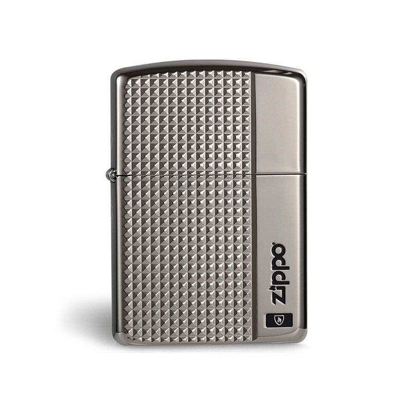 Zippo之宝黑钛金凹凸在侧盔甲打火机镀钛十字网格条纹经典款礼品 - 正品打火机全球购企业店