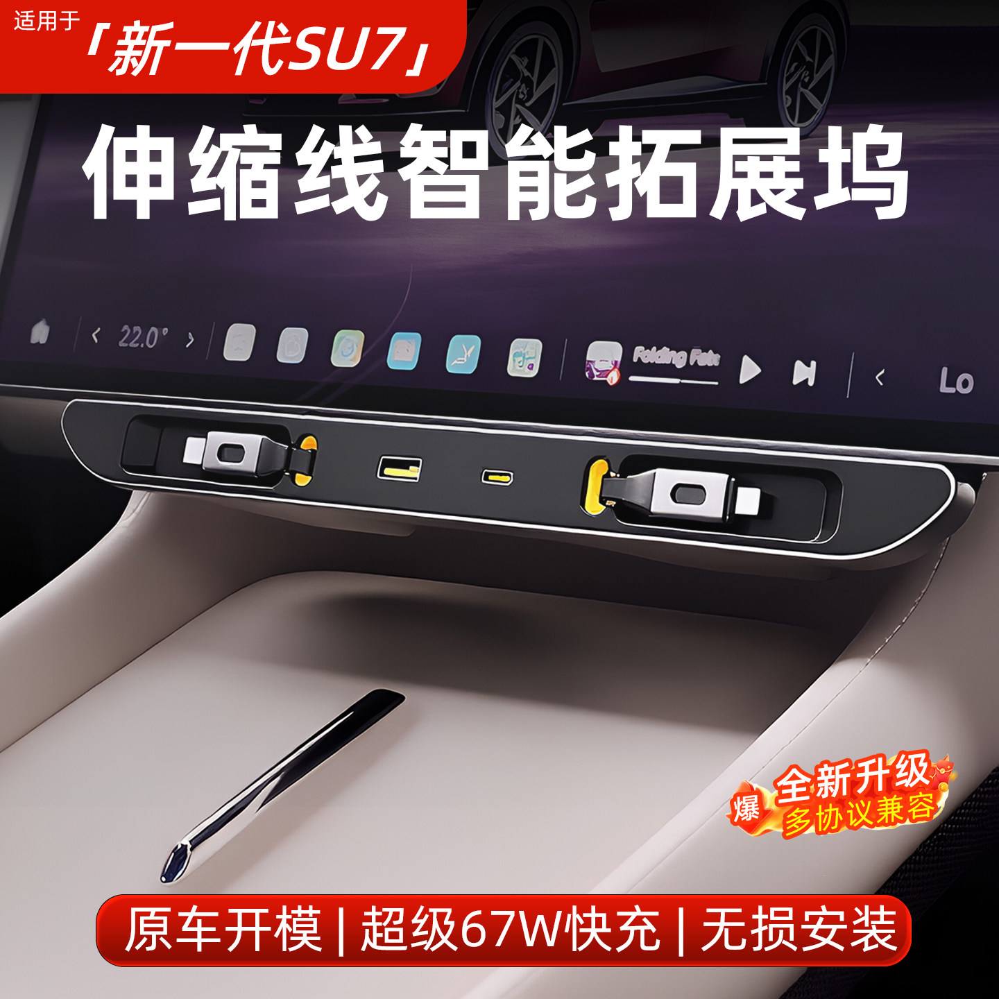您的位置:安康生态农业开发平台  >   >  适用新一代小米SU7YU7屏幕下拓展坞车充电器快充Type-C伸缩线配件