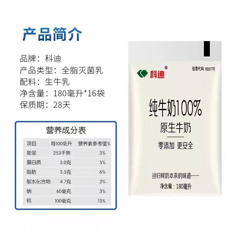 科迪原生纯牛奶袋装牛奶透明袋装小白奶0添加网红180ml整箱早餐 - 科迪牛奶乳业店