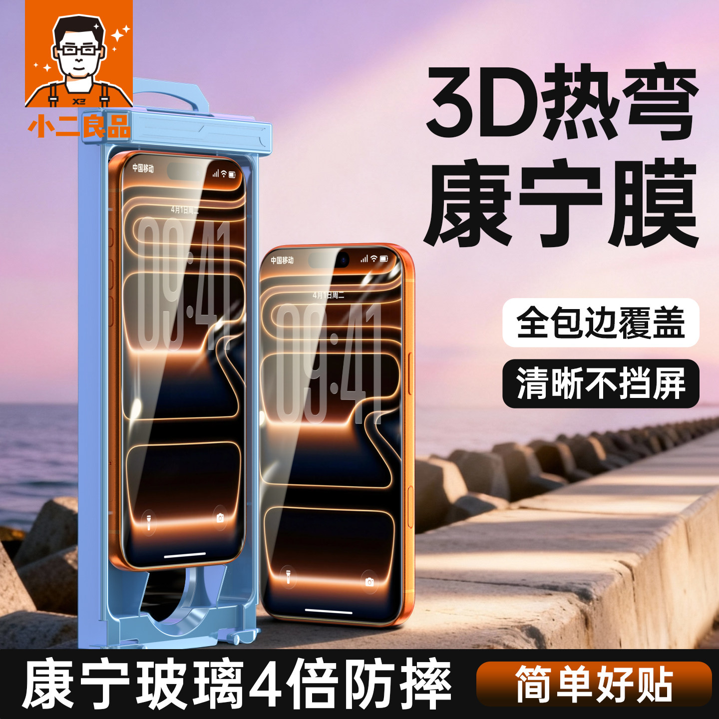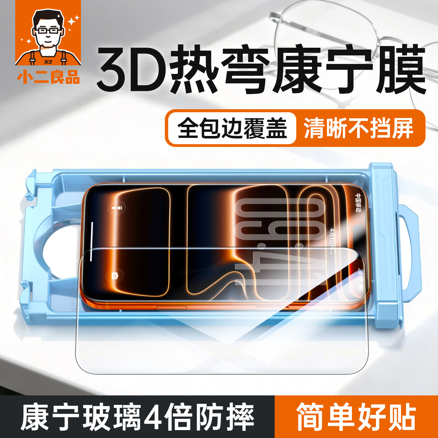 小二良品 3D热弯康宁膜 升级排气胶 适用苹果17ProMax钢化膜iPhone16Pro手机膜屏幕保护贴膜17pm全屏覆盖ip16 - 小二良品旗舰店