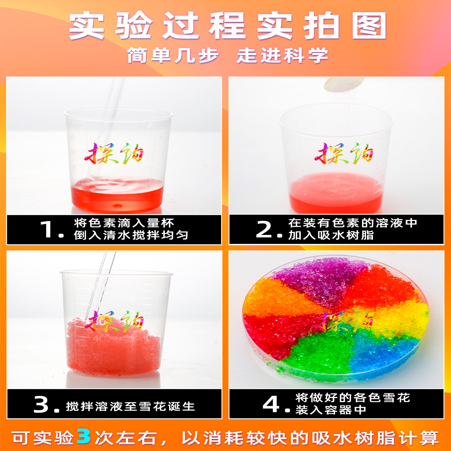 探询彩虹雪花儿童科学化学实验套装七彩人造雪花瓶小学生手工制作 - 探询实验室