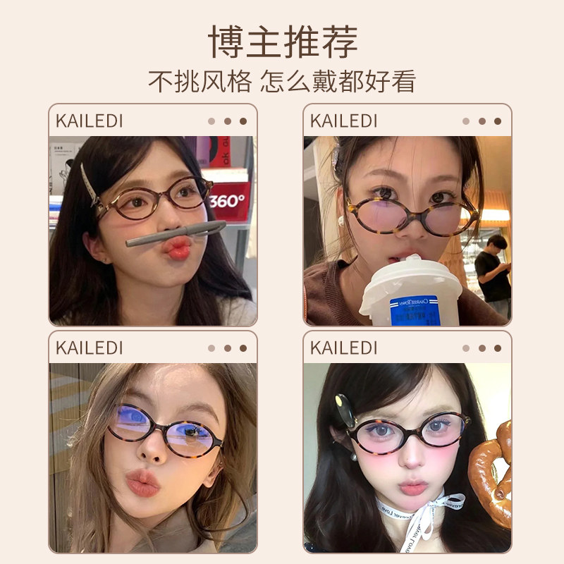 张元英同款书呆子眼镜近视女复古玳瑁高级感椭圆小框小脸可配度数 - 凯乐迪眼镜旗舰店