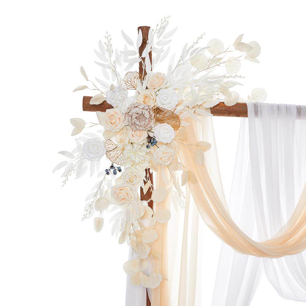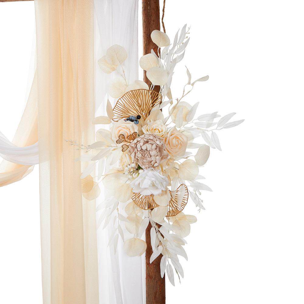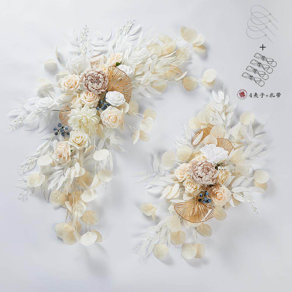 波西米亚婚礼拱门花艺新款香槟白拱形仿真花户外婚礼欢迎标志假花 - 香风满袖工厂店的小店87
