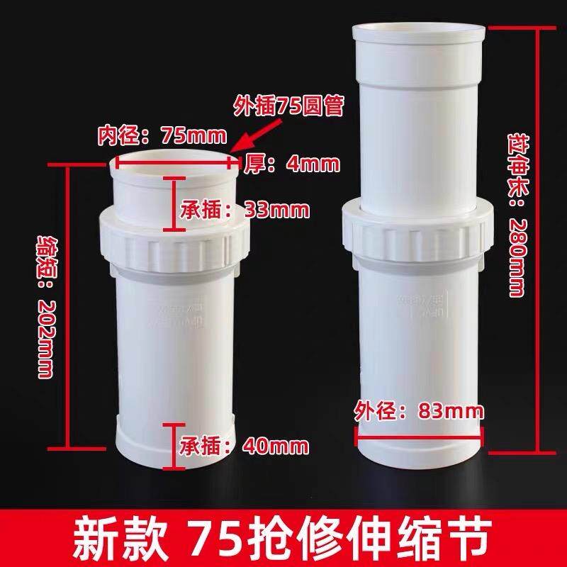 PVC110螺纹抢修加长伸缩节160快接伸缩三通可伸缩管道修覆接头 - CTT-CTM奇维腾专卖店