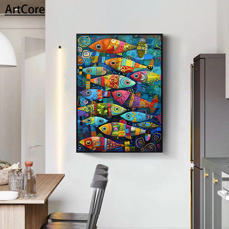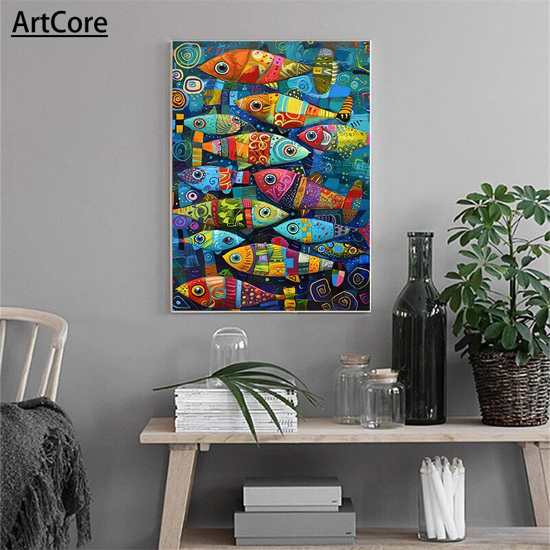 Abstract Colorful Fish in The Sea Posters Painting Vintage - ArtCore