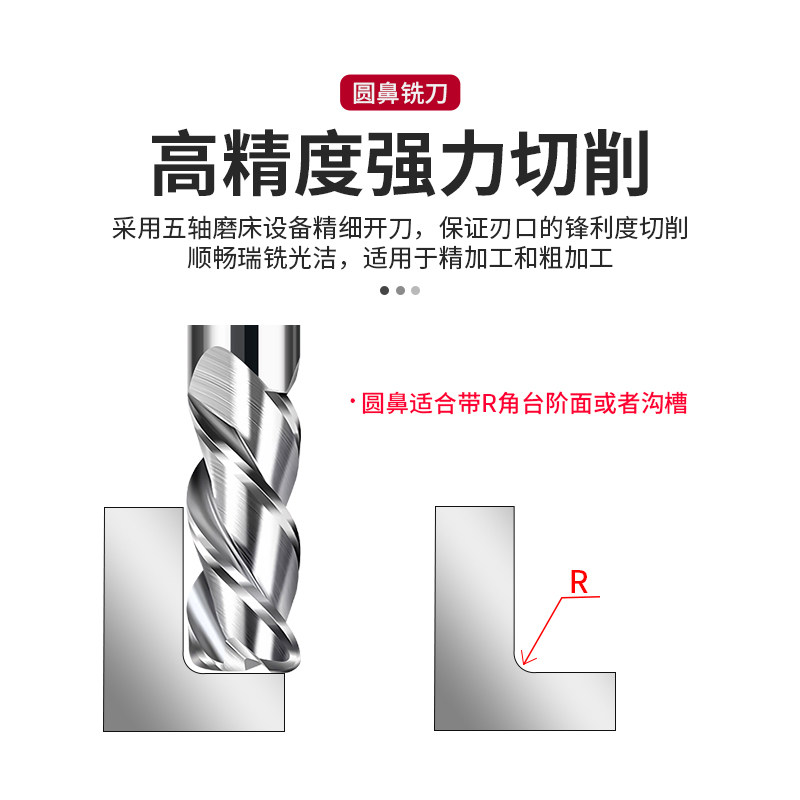 60度3刃铝用圆鼻刀钨钢硬质合金加长牛鼻刀涂层立铣刀R0.5R1R2R3 - 东莞金诚数控刀具