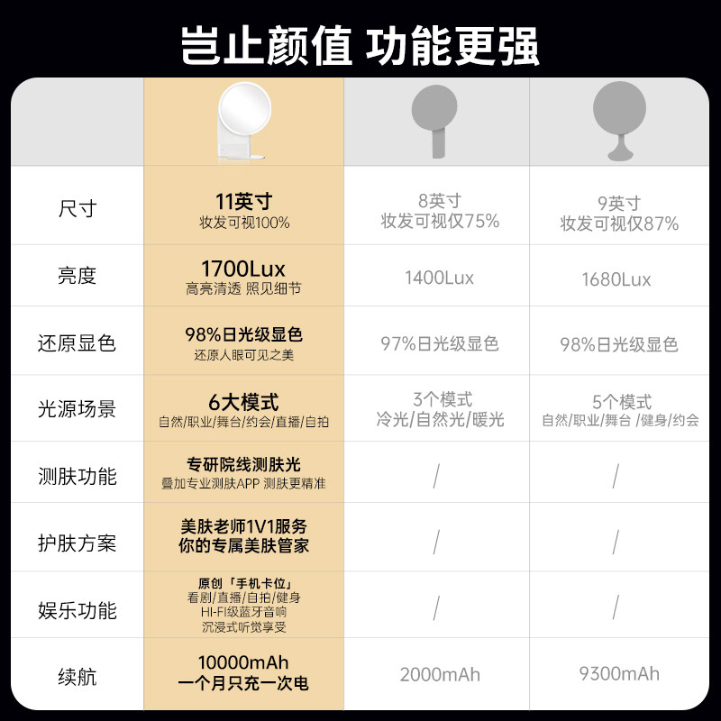 SIMETRA喜境智能化妆镜LED美妆镜台式高清宿舍梳妆镜子礼物 - SIMETRA喜境旗舰店