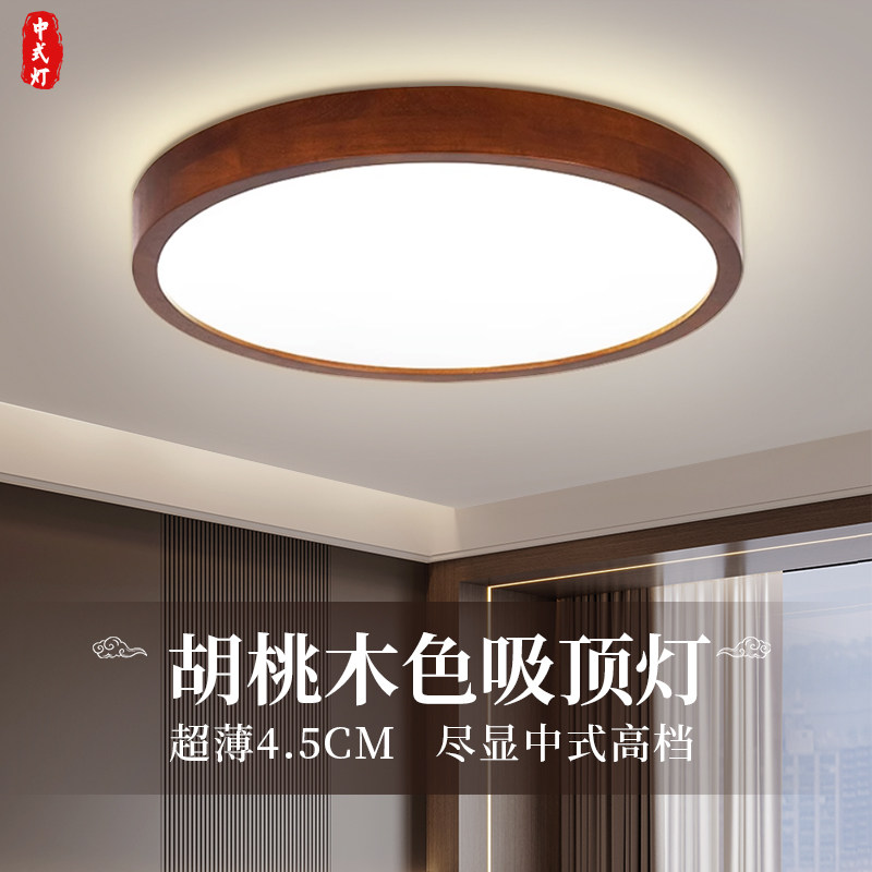 胡桃木LED吸顶灯新中式实木客厅主卧室书房房间餐厅阳台圆形灯具 - 律芳泽旗舢店企业店