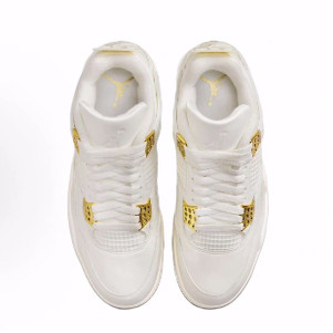Jordan Air Jordan 4 Metallic Gold 耐磨 中帮 篮球鞋 女款 白色 - 蛋挞体育sneakers