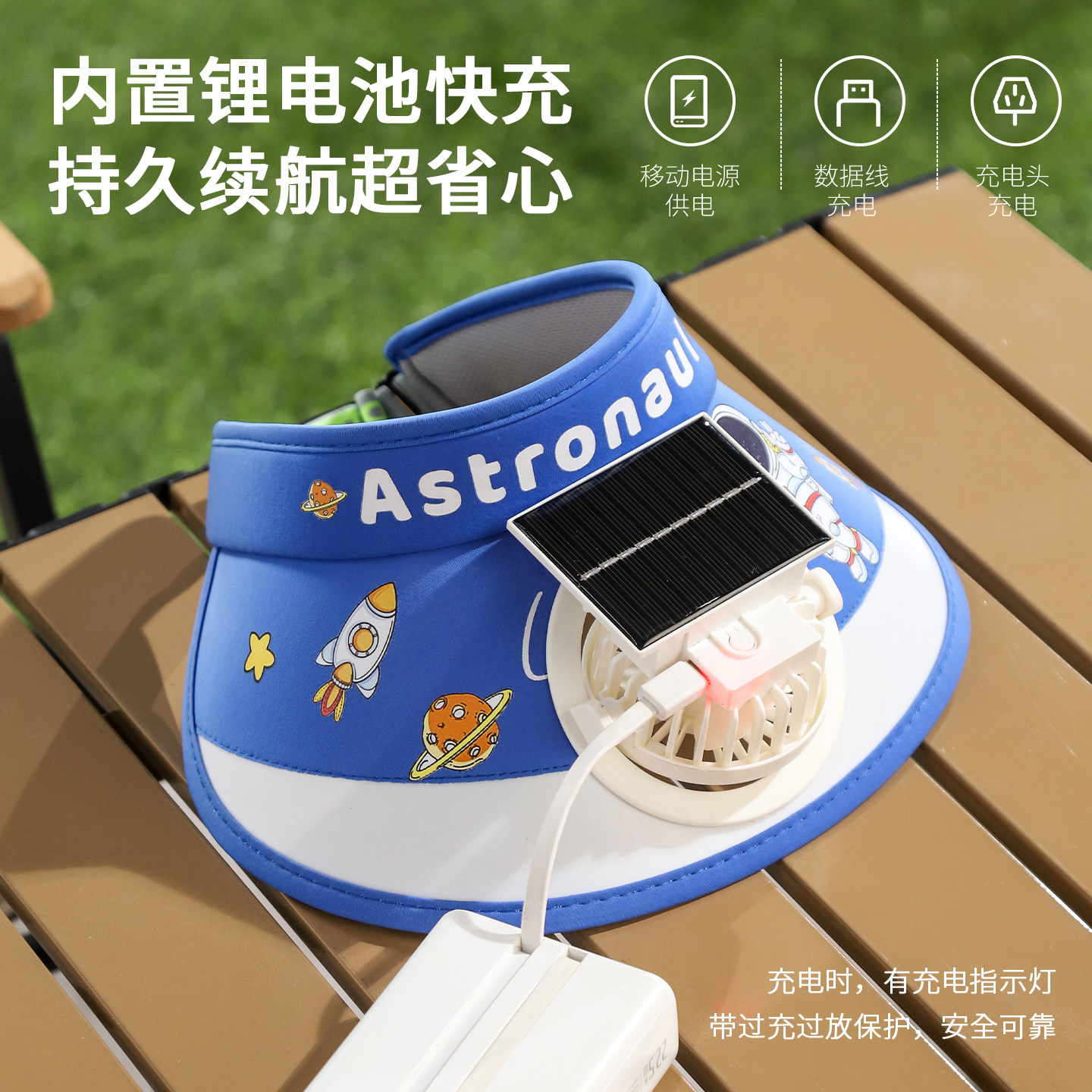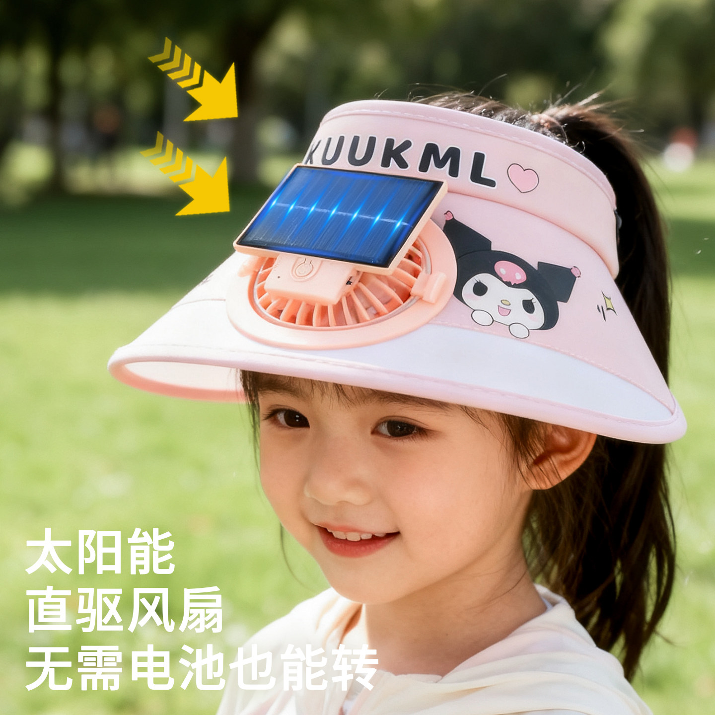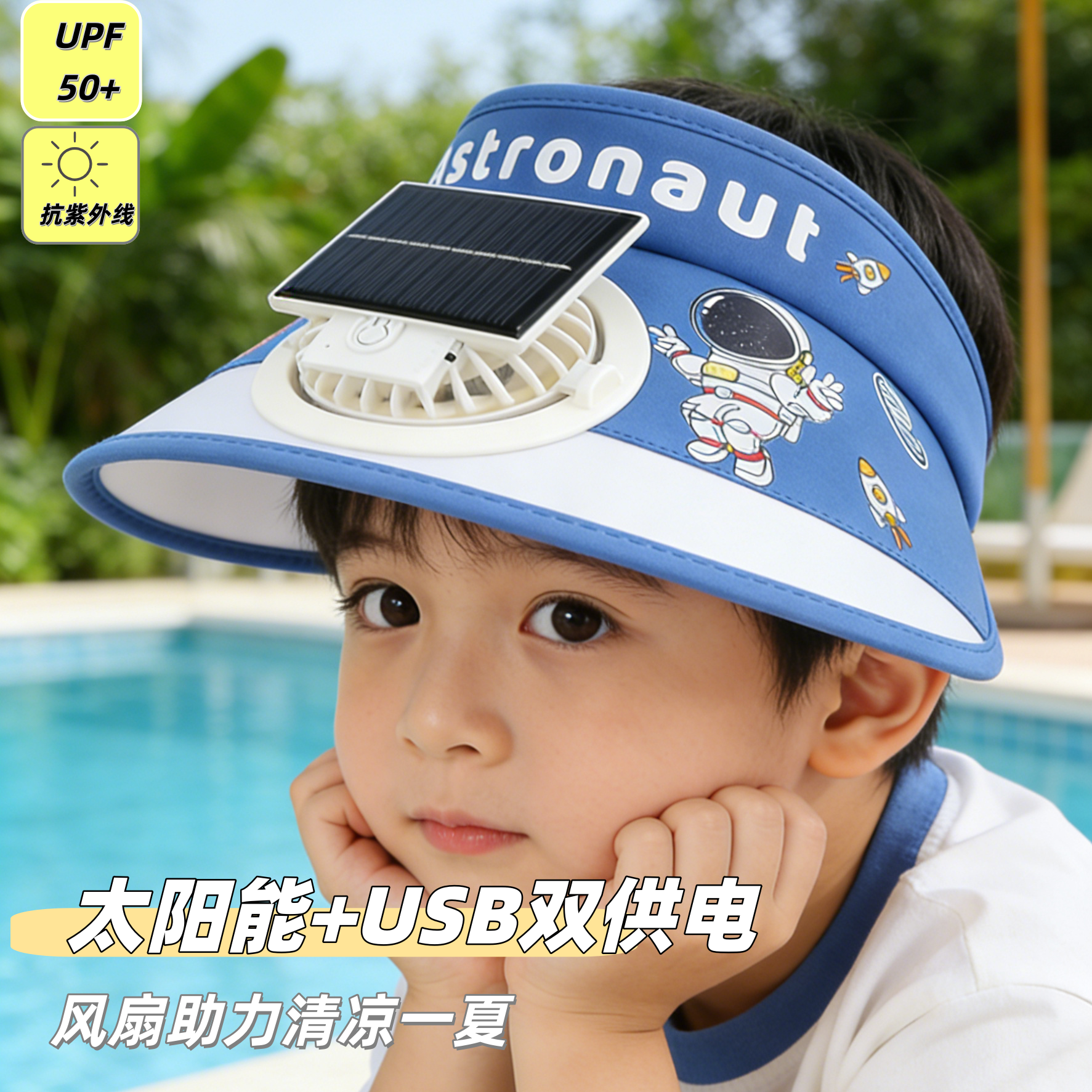 儿童卡通太阳能风扇帽USB充电防晒空顶帽男女童遮阳帽户外便携夏 - 欣饴家居企业店