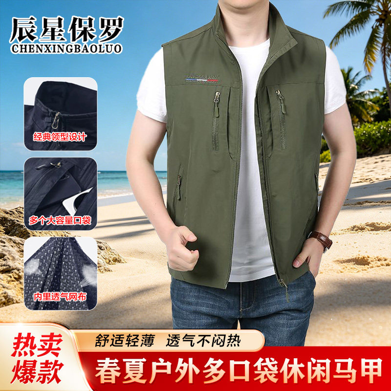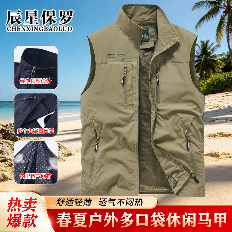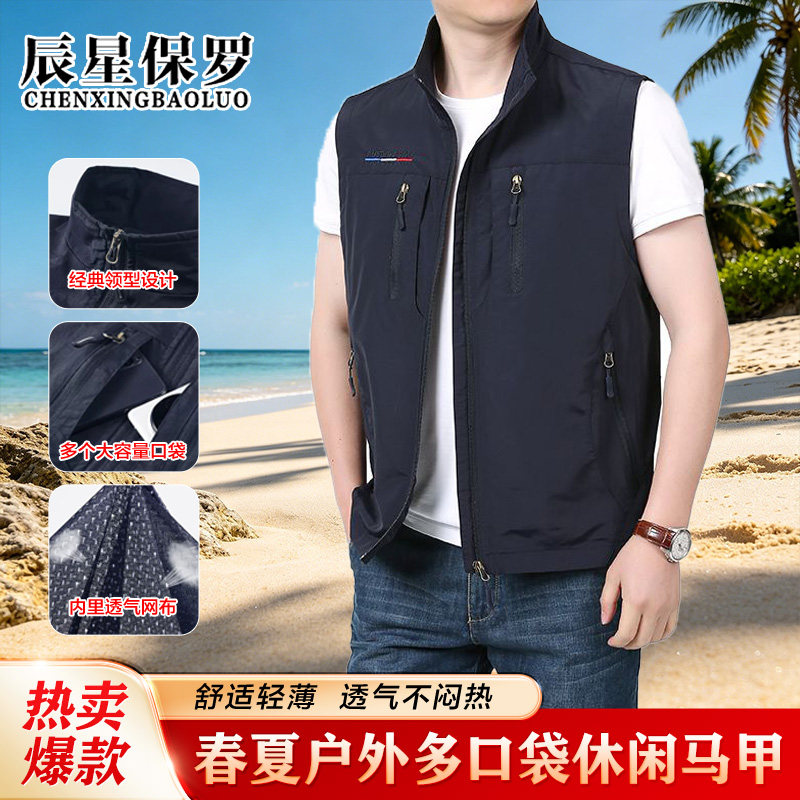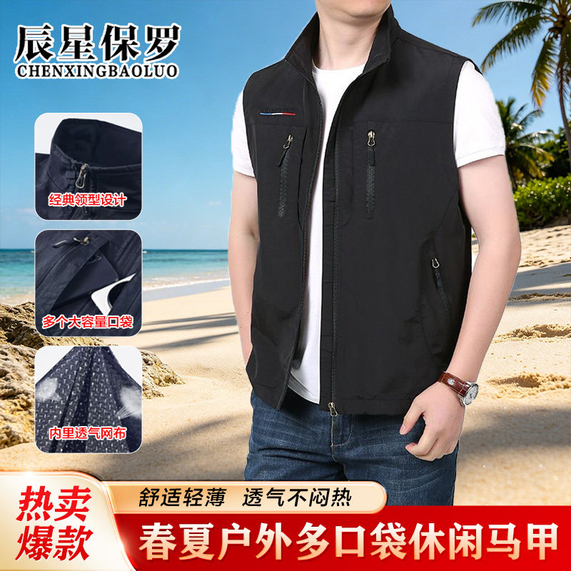 户外男士马甲春夏季薄款速干网孔透气运动多口袋立领休闲马甲Q1 - 曼烁服饰店