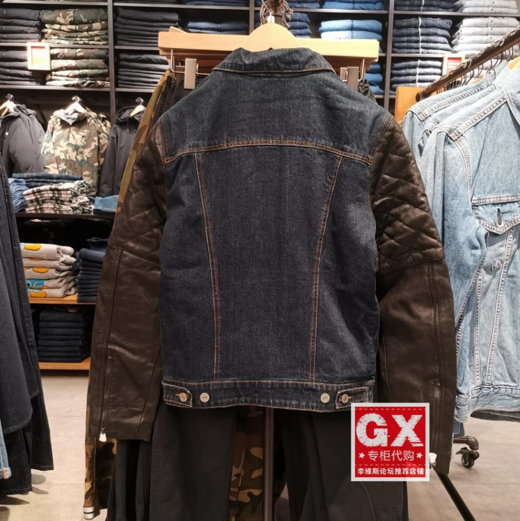 专柜正品Levi's李维斯余文乐男羊皮拼接机车牛仔衣棉衣24465-0000 - GX专柜代购