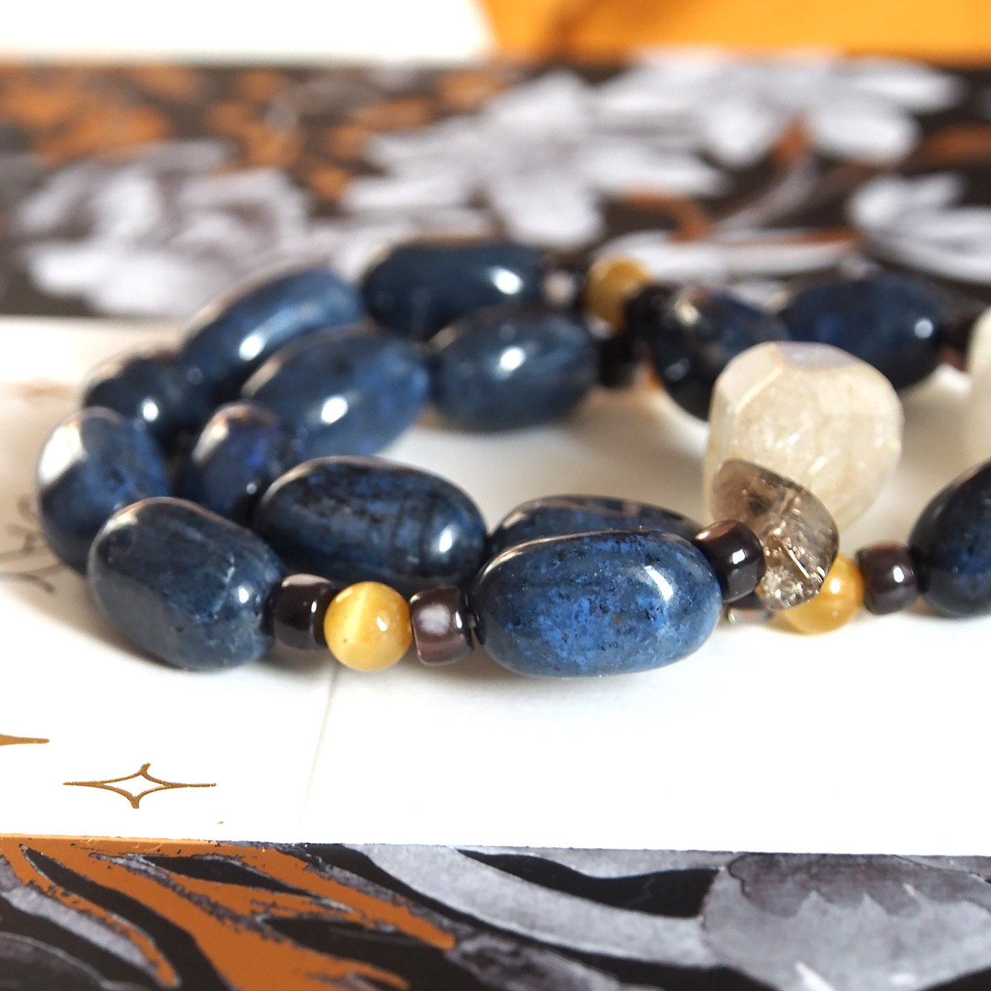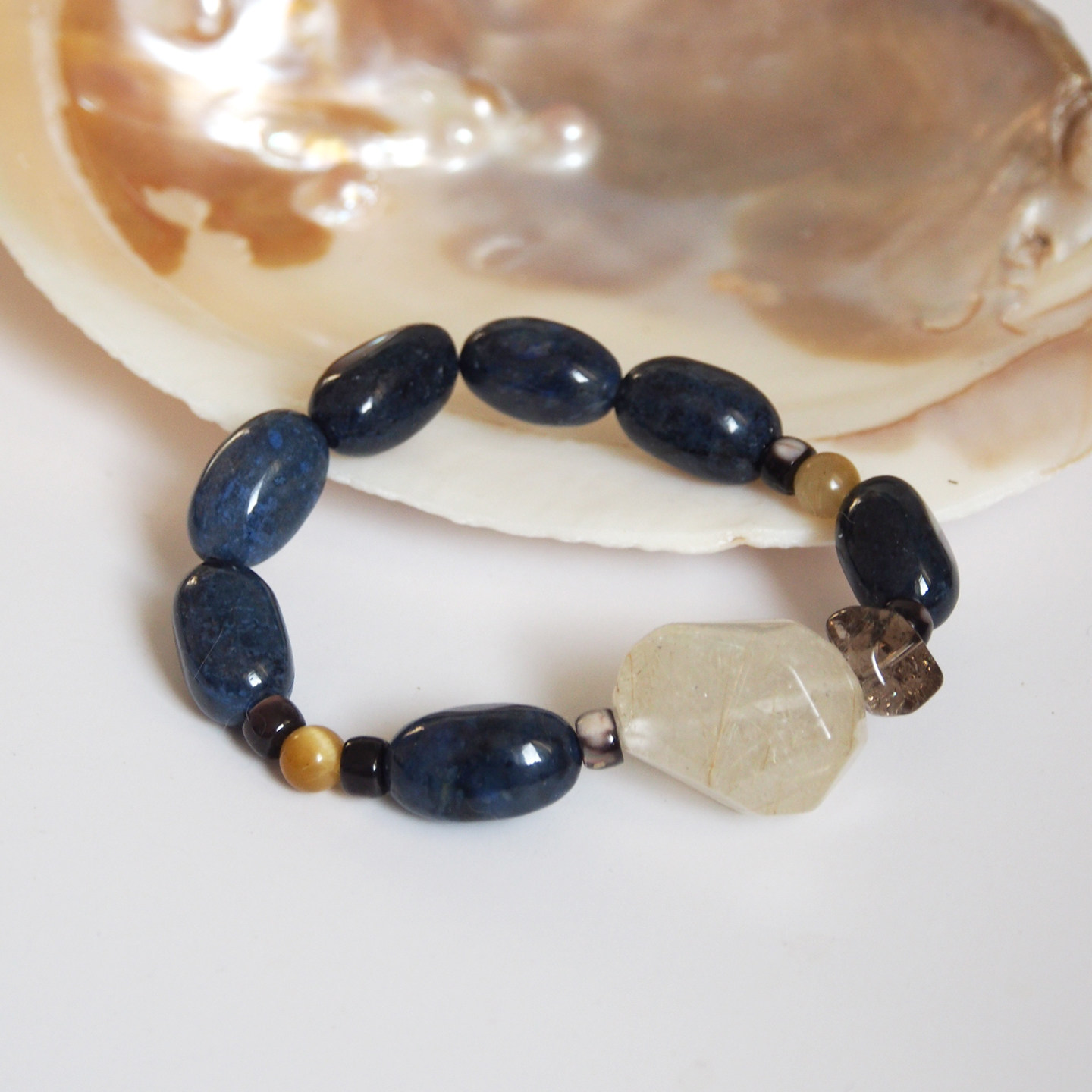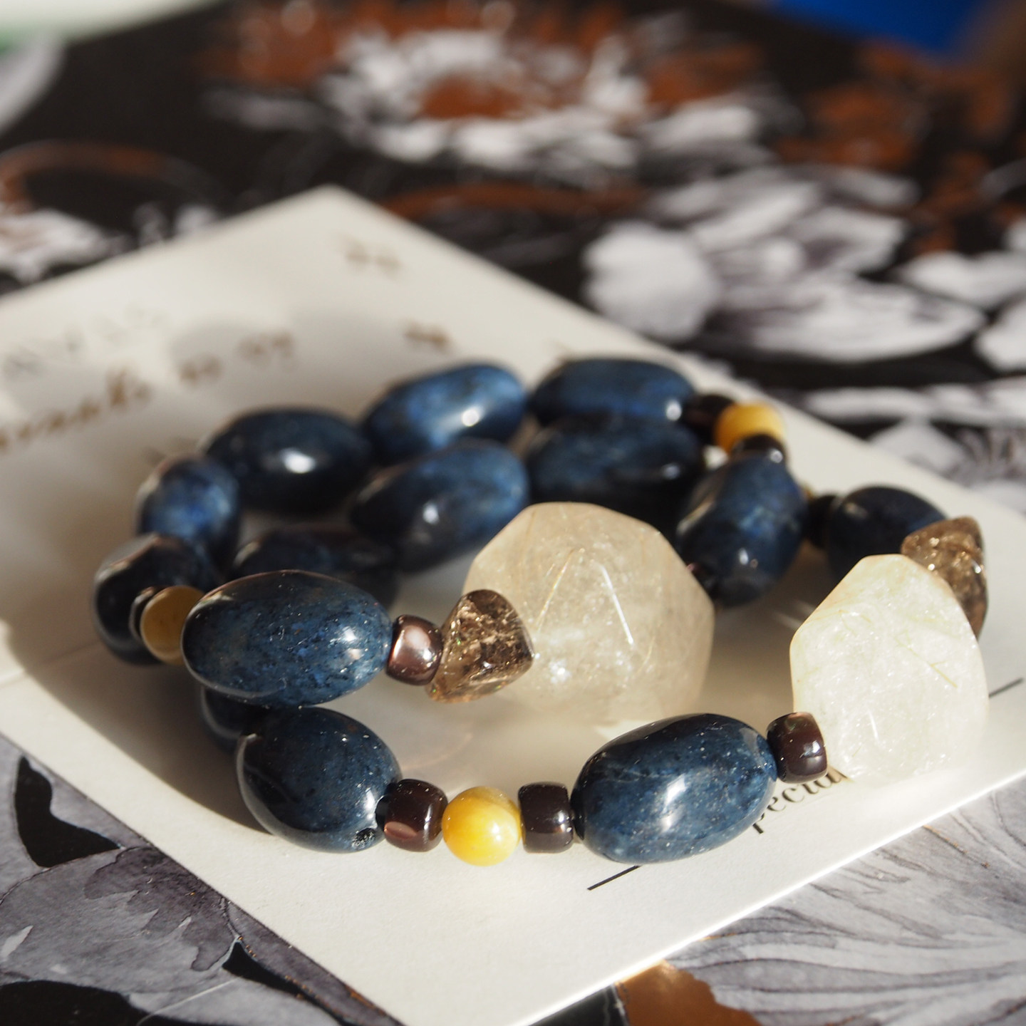 珠莲碧荷『暗夜幽光』天然金发晶墨蓝色蓝纹石多宝高级感时尚手链 - 珠莲碧荷原创手钏工坊