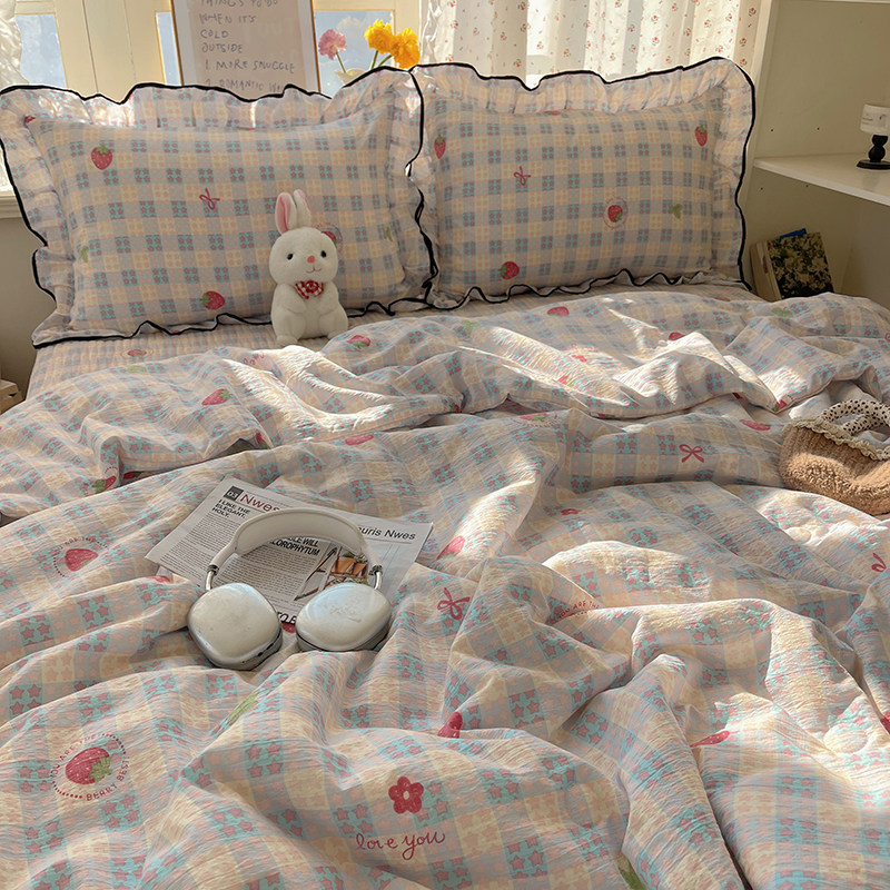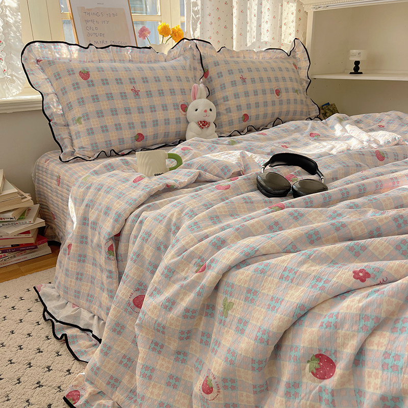 您的位置:安康生态农业开发平台  >   >  法式花边格子草莓水洗棉夏凉被四件套床盖款空调被单双人宿舍夏被