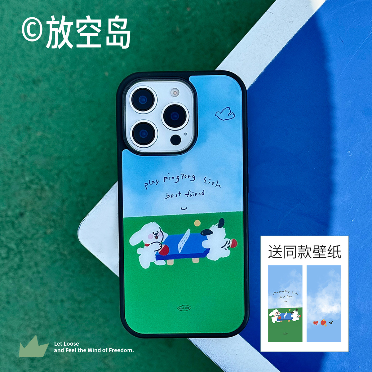 放空岛正版原创丨<兔球小狗乒乓球>蓝色黑边亚克力磨砂磁吸手机壳轻薄不沾指纹可爱小众设计ins高级感 - 放空岛Lull isle