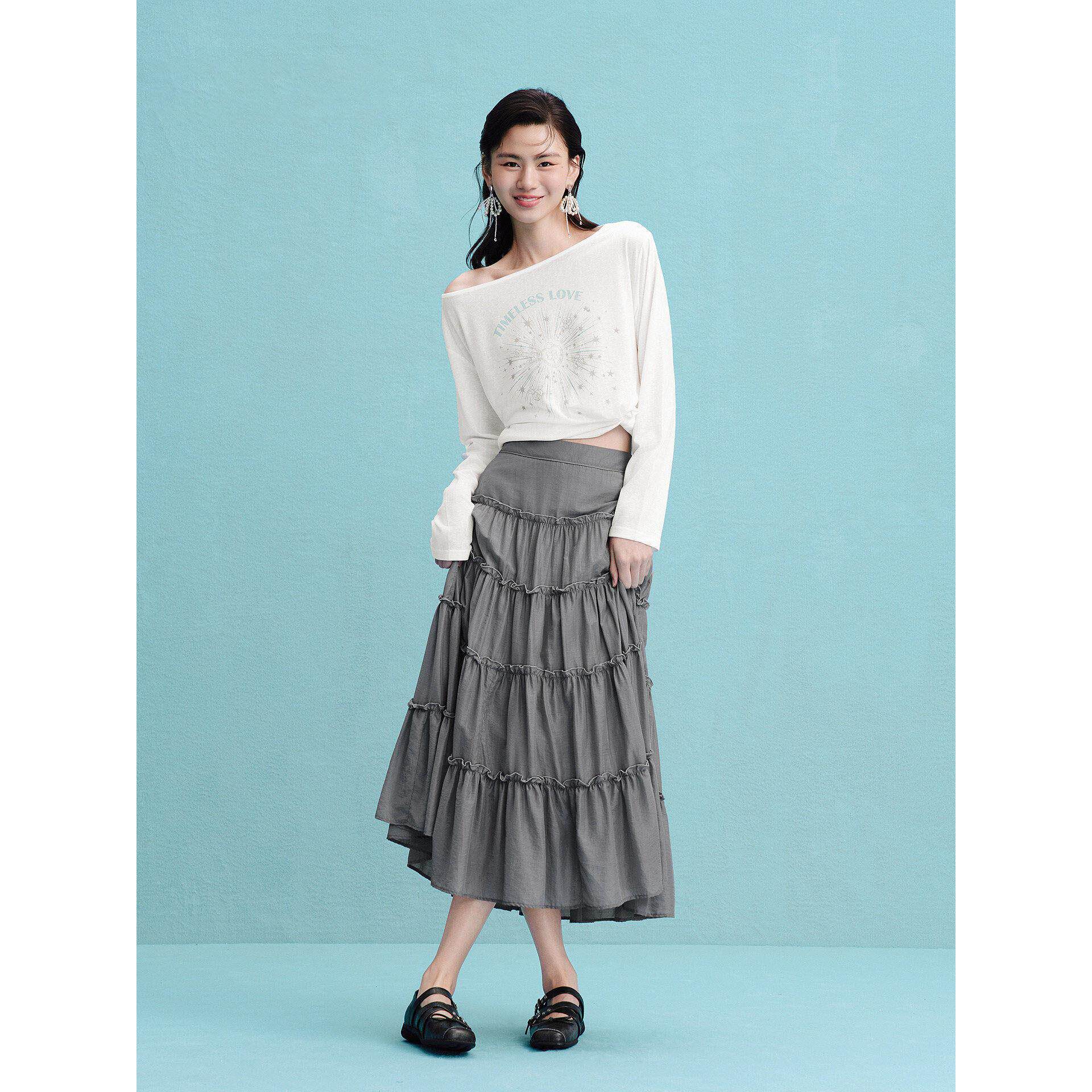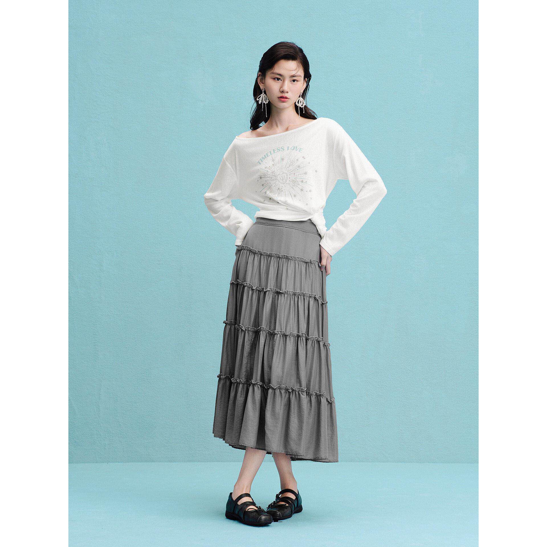 【商场同款】微光长裙夏季新款莱赛尔大裙摆蛋糕裙女C1GFG2261 - babyface高端女装