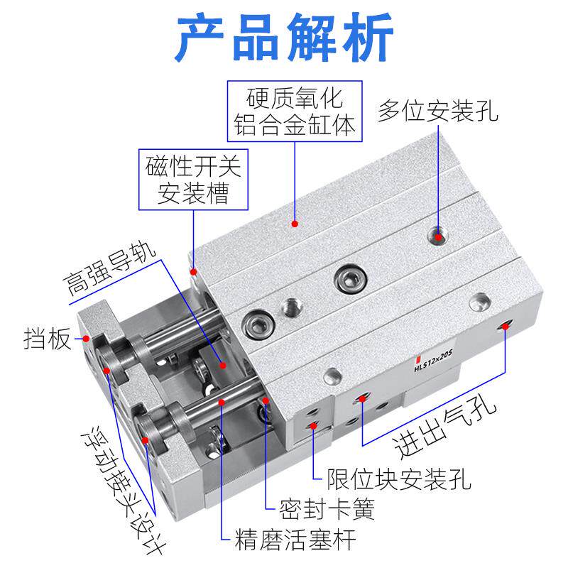 亚德客型HLQ滑台气缸HLS6X8X12X16X20X25X10X30X40X50X75S SAS SA - 佰培采足专卖店