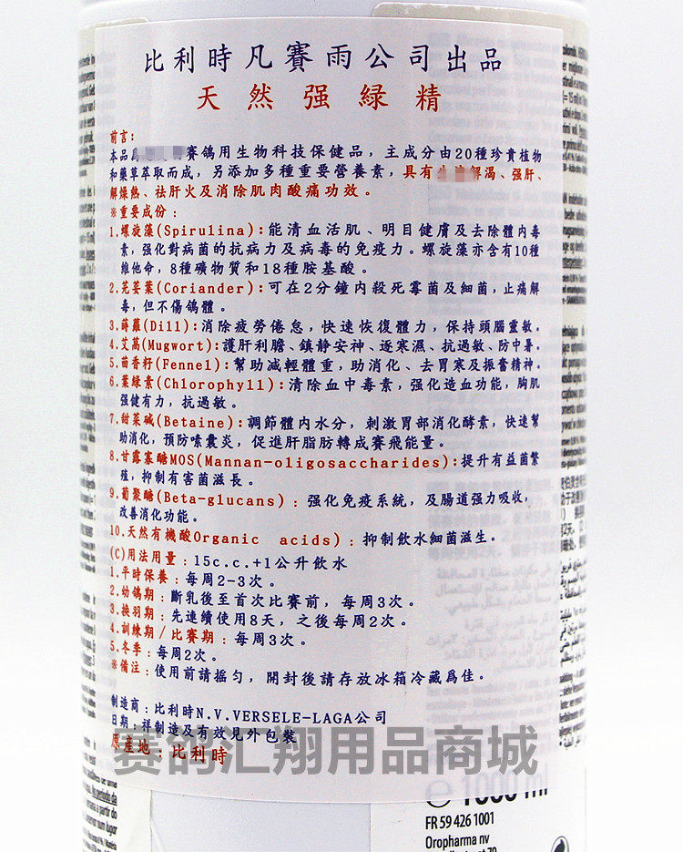 凡赛尔鸽药强绿精1000ml赛鸽绿色精保健补体营养液凡赛尔鸽绿精 - 汇翔赛鸽用品店