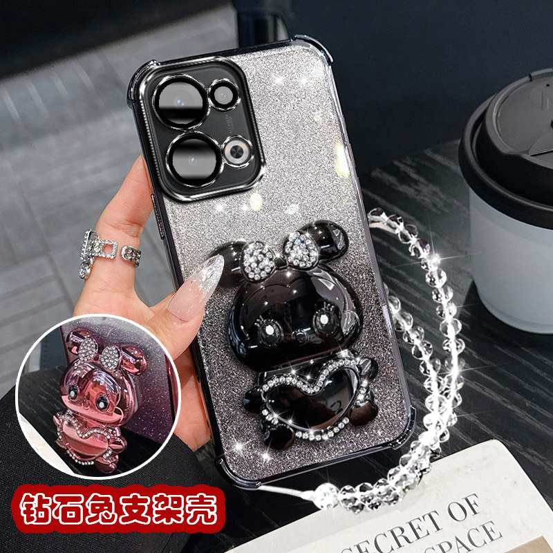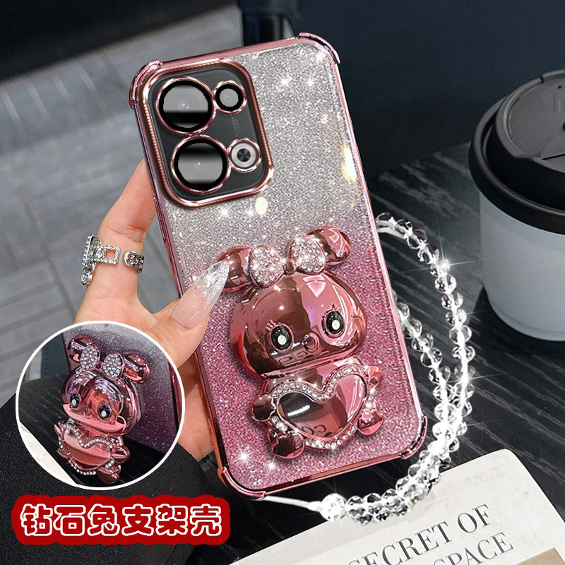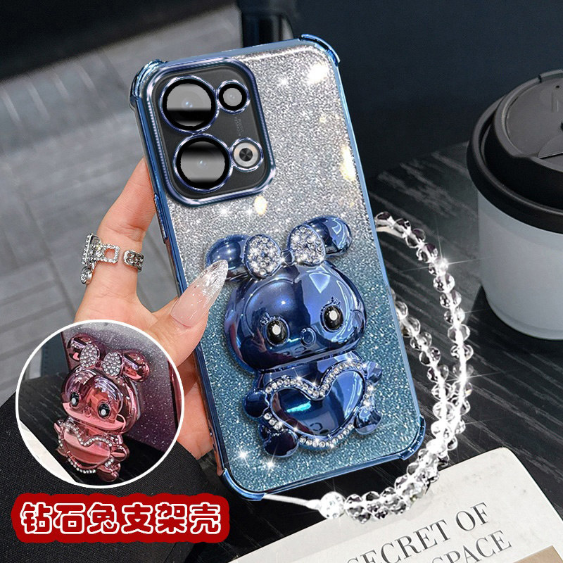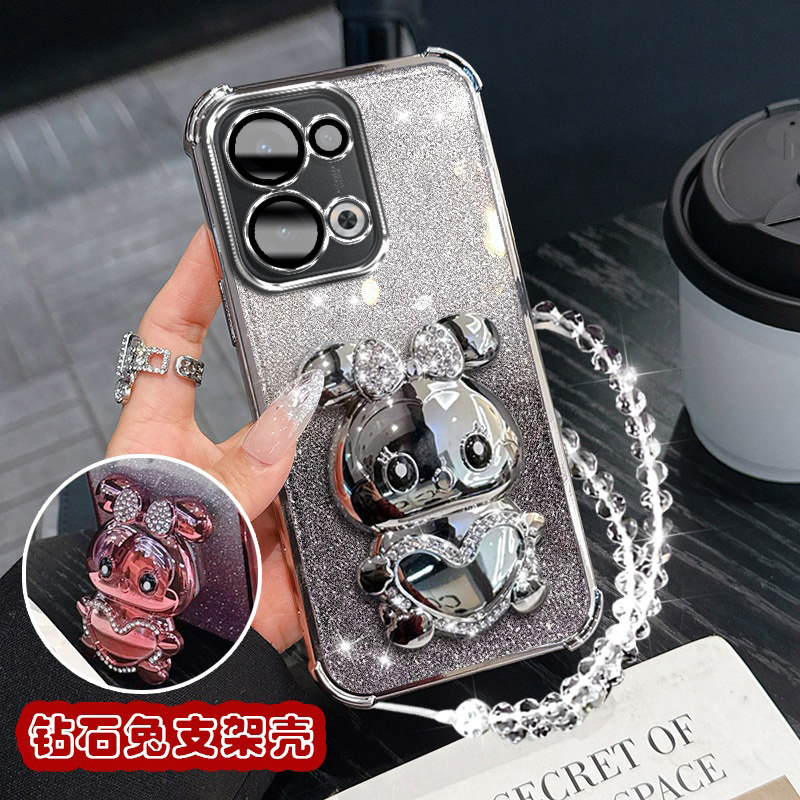 oppoReno13手机壳镶钻兔支架PKM110防摔Reno13Pro保护套新款oppo闪粉硅胶Rone13镜头膜全包opopreno13女opp0p - 泉格数码