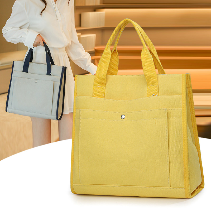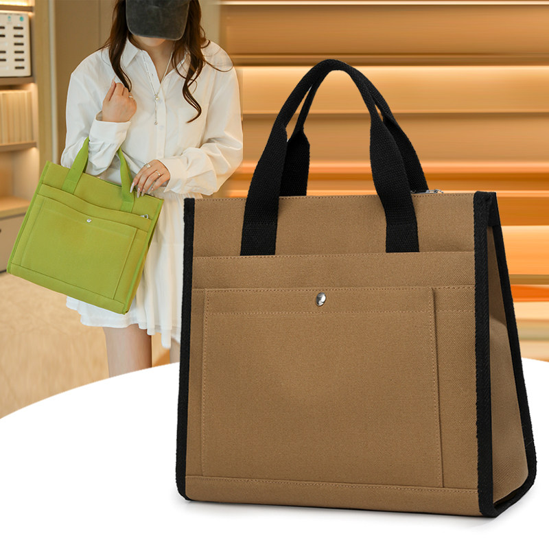 原创帆布手提公文包防水轻便单肩包女商务多层上班通勤包学生书包 - 恒舒手袋