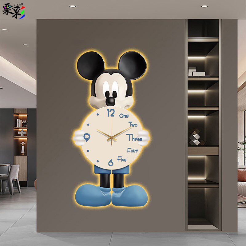 米奇LED氛围灯画玄关钟表挂钟客厅时钟新款时尚大气创意时钟壁灯 - 雪覆枫枝商城的小店54