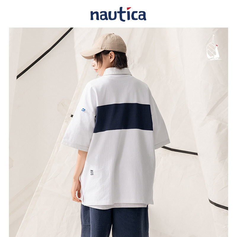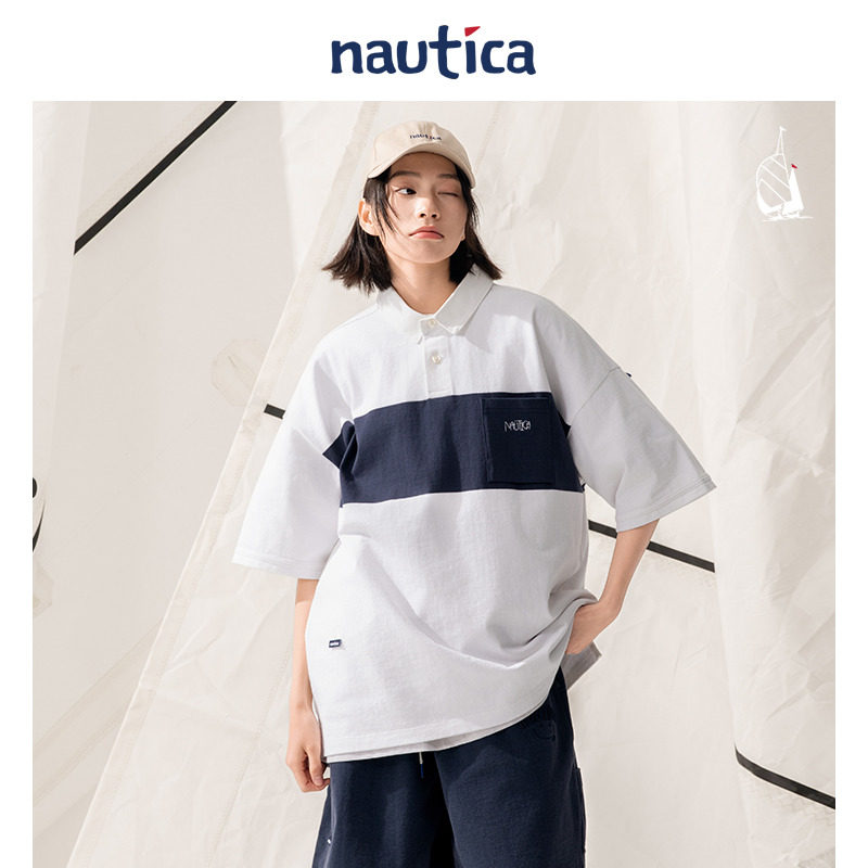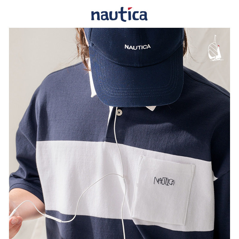 【官方正品】nautica whitesail 日系中性条纹撞色短袖T恤polo衫 - nautica white sail旗舰店