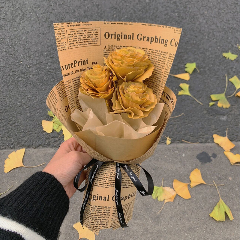 英文报纸牛皮纸礼物礼品盒鲜花包装纸向日葵花束包花纸花艺材料 - To encounter 悦色