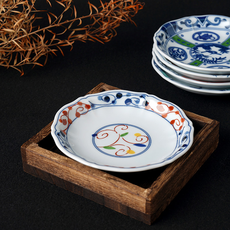 小碟子蘸料日式染锦绘变波佐见烧套装礼盒复古染锦绘变创意调味碟 - 西海家居