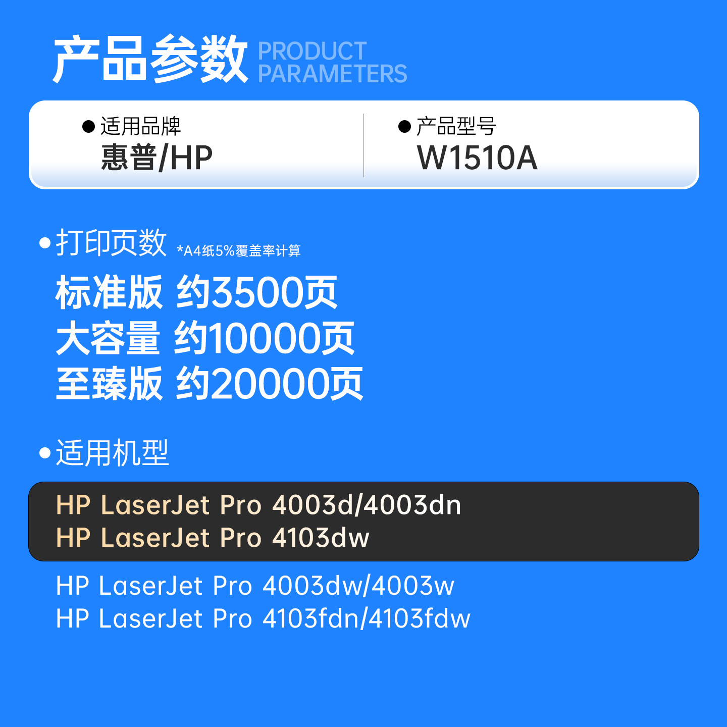 博书适用惠普W1510A硒鼓LaserJet Pro 4003d/w/dn/dw碳粉盒MFP 4103dw/fdw/fdn打印机墨粉盒W1510X带芯片正品 - 博书旗舰店