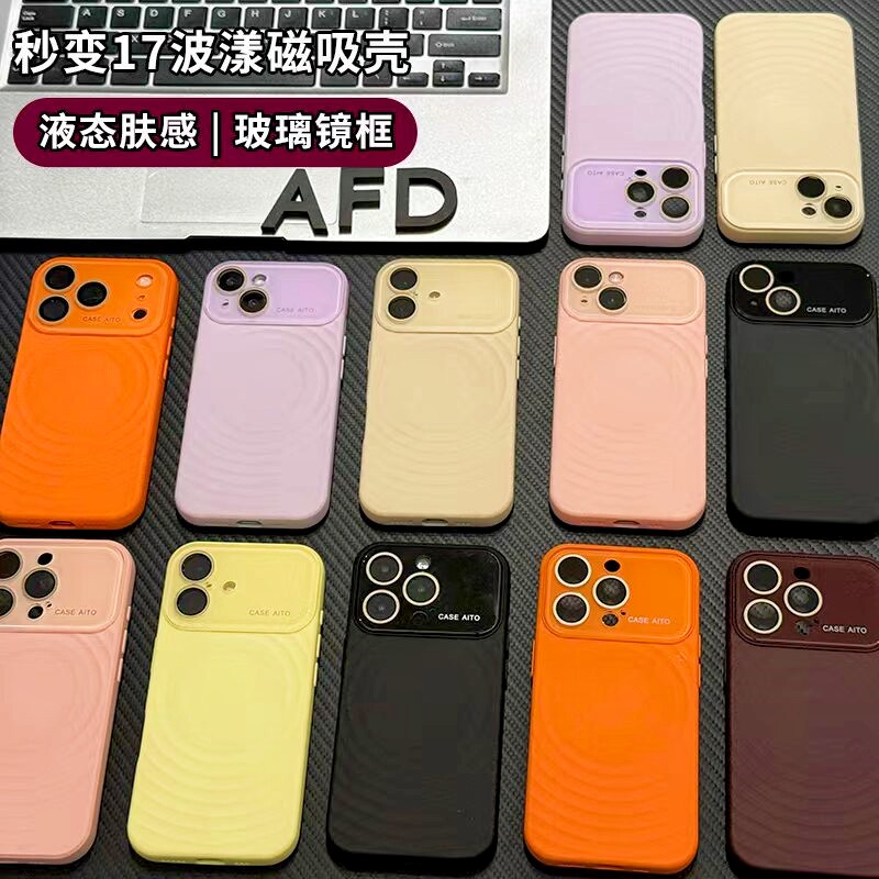 新款秒变17白色波漾磁吸壳适用苹果17/16promax液态肤感玻璃镜框手机壳iPhone15plus男女14/13promax全包防摔 - 优一壳