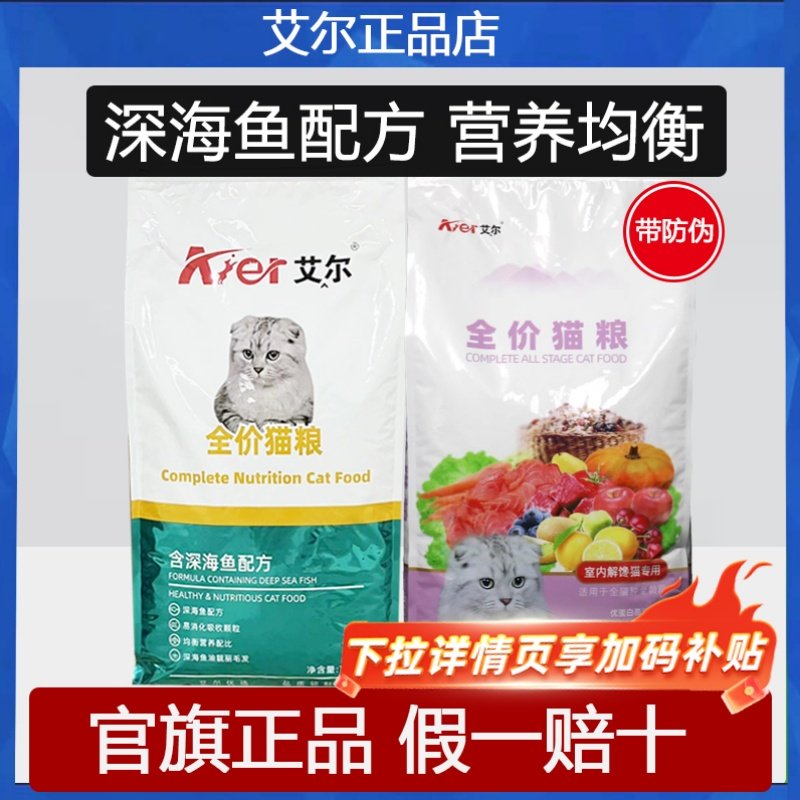 艾尔猫粮10kg深海鱼全价成猫幼猫舍猫加菲流浪猫大包20斤装佰萃 - 纳乔宠物用品严选店
