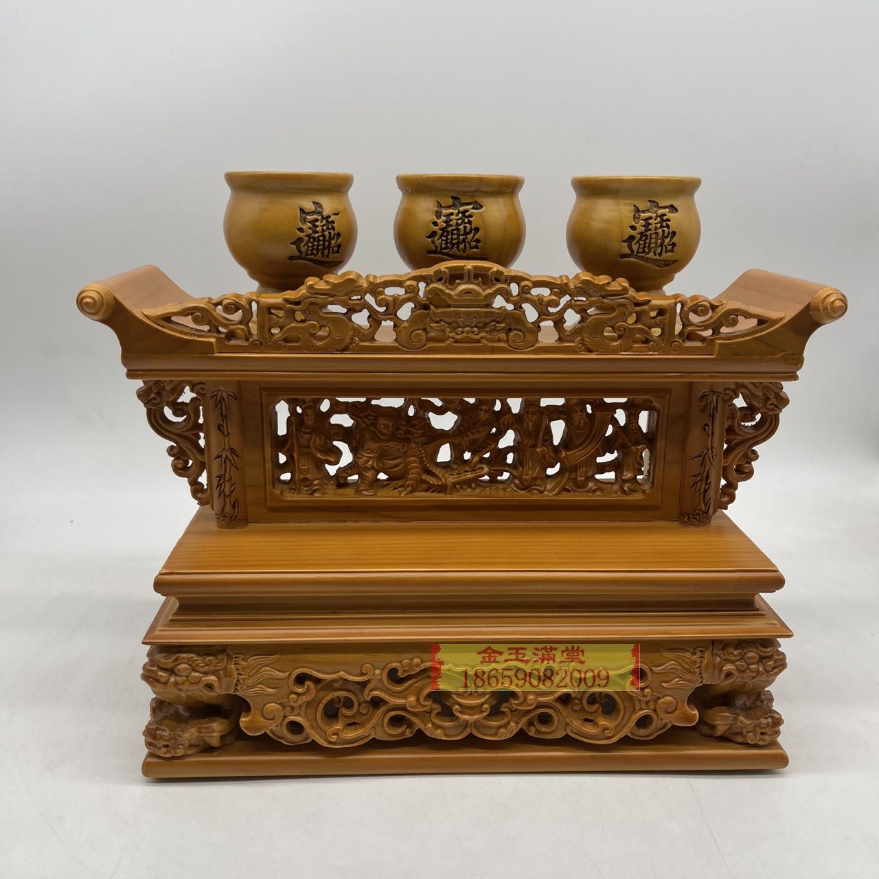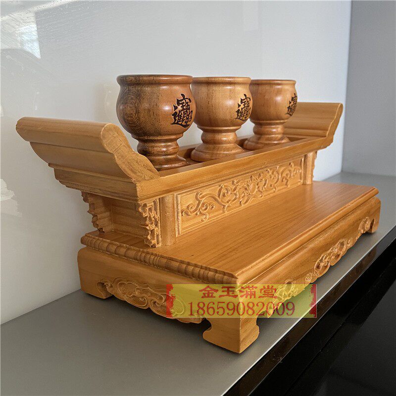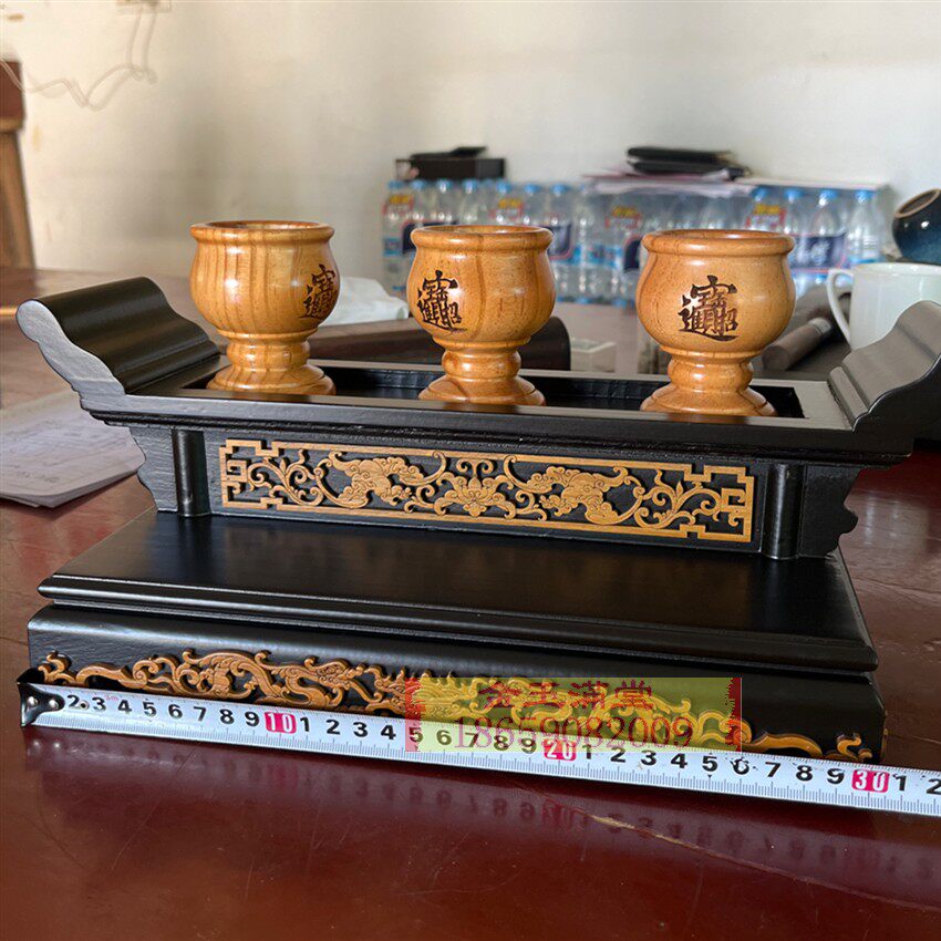茶杯座玄关供杯盘贡盘佛具摆件精致小酒盅酒杯座小案桌木雕茶杯子 - 福余木雕厂