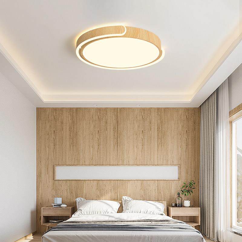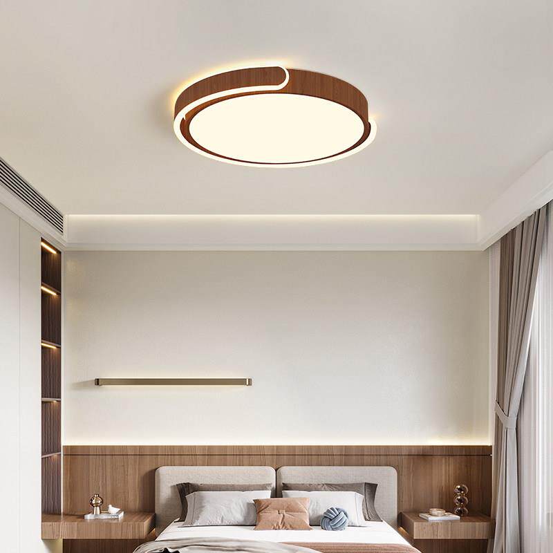 卧室灯北欧新款创意原木纹led吸顶灯简约现代圆形主卧书房间灯具 - 奕嗨谆洋专卖店