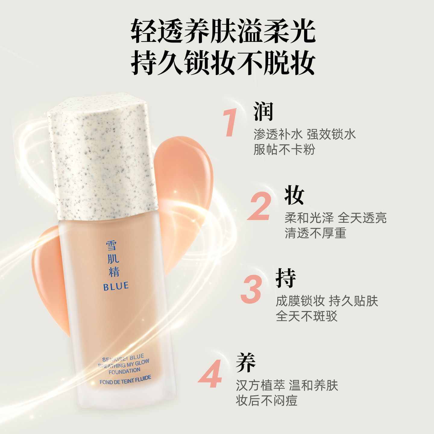 雪肌精BLUE青粹耀我柔光精华粉底液30ml轻薄透自然滋润保湿秋冬 - 雪肌精BLUE海外旗舰店