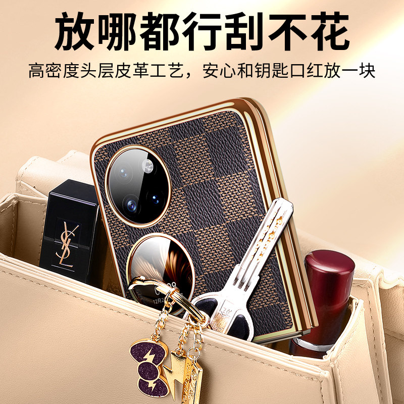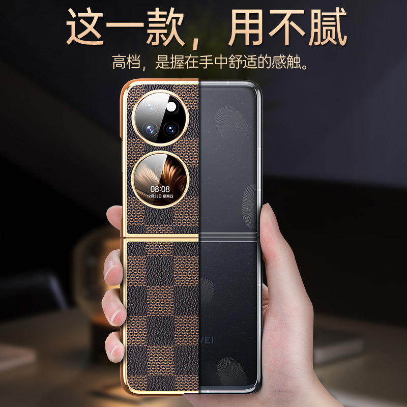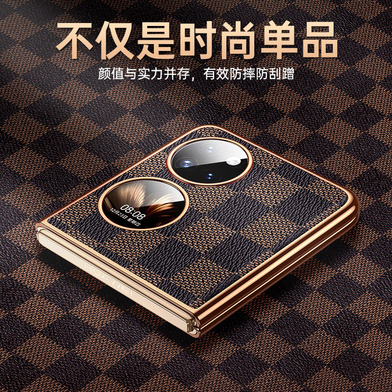 适用华为P50pocket手机壳新款防摔p50宝盒保护套网红皮纹电镀p50POCKET折叠屏全包P50Pocket 2男女款高级感5g - 开迪丰鑫数码专营店