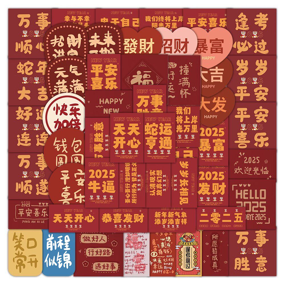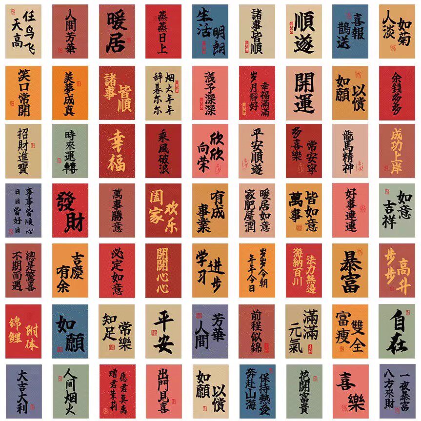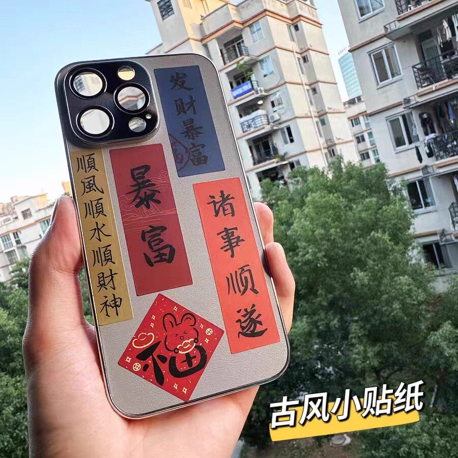 手机贴纸复古贴纸古风中式中国风文字书法装饰图案标签发财好运贴 - 沃比心