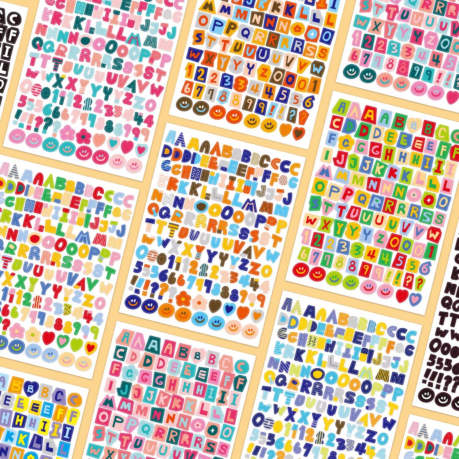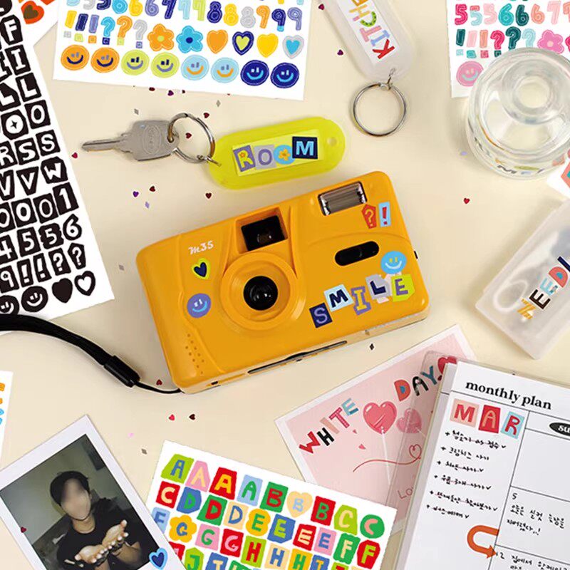 彩色英文字母韩国paperian标签符号数字贴纸素材日记手帐本手机行李箱水杯相片咕卡装饰自粘不干胶diy贴画纸 - 大图释旗舰店