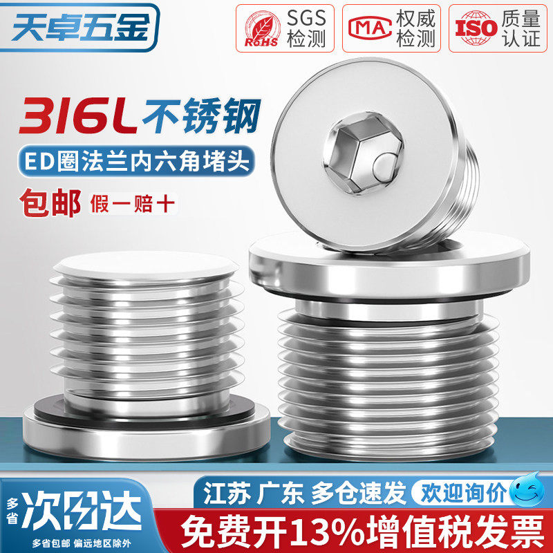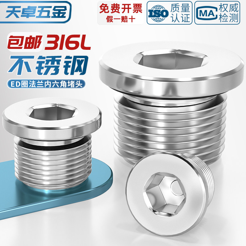 316L不锈钢内六角ED圈密封堵头带法兰边油塞英制丝堵螺塞G1/2 3分 - 天卓五金官方旗舰店