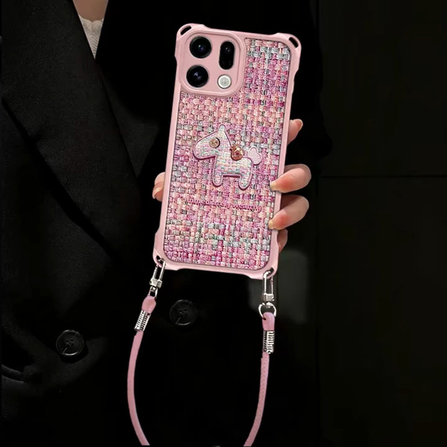 编织小马四角挂绳皮纹适用OPPOfindx9手机壳新款超级好看女款findx8保护套ins风小清新全包findx9pro/x7外壳 - 晨晨数码配件