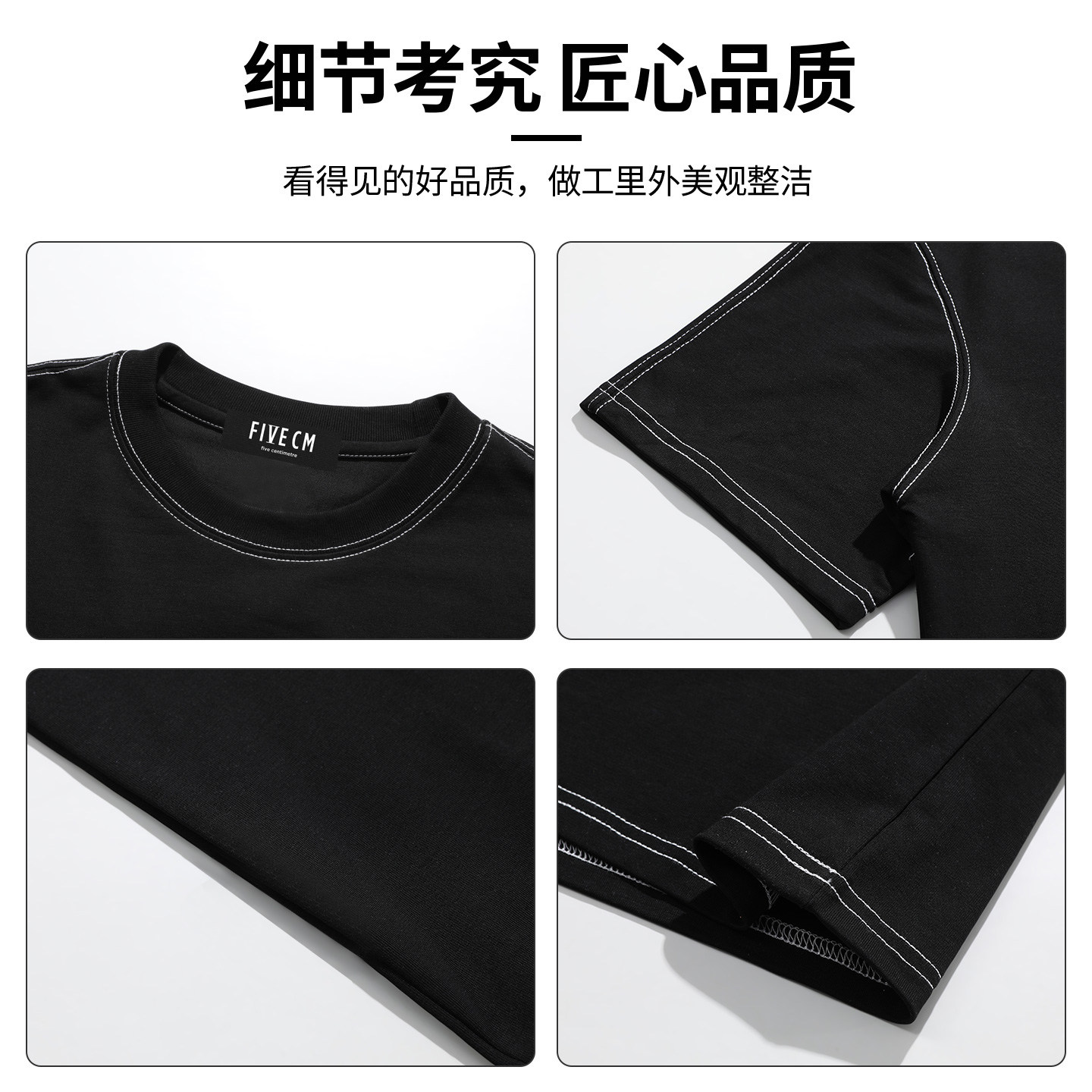 it FIVECM美式潮牌辑明线短袖t恤男女款潮牌2026夏季宽松撞色体恤 - FIVE CM官方旗舰店
