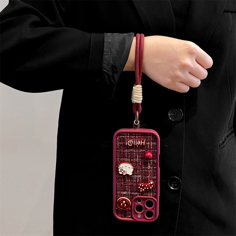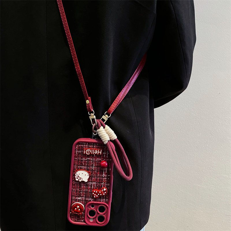 酒红小香风kt猫适用opporeno15手机壳reno14/13/12pro新款reno11绒布reno10女findx9/8卡通A6挂绳A5/A3防摔套 - 韩夏福瑞杰专卖店
