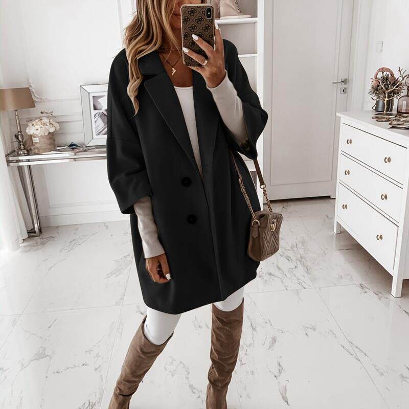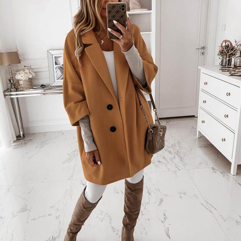 冬季时尚翻领口袋裤羊毛大衣2024女士夹克妇女 - Spellbind beautiful