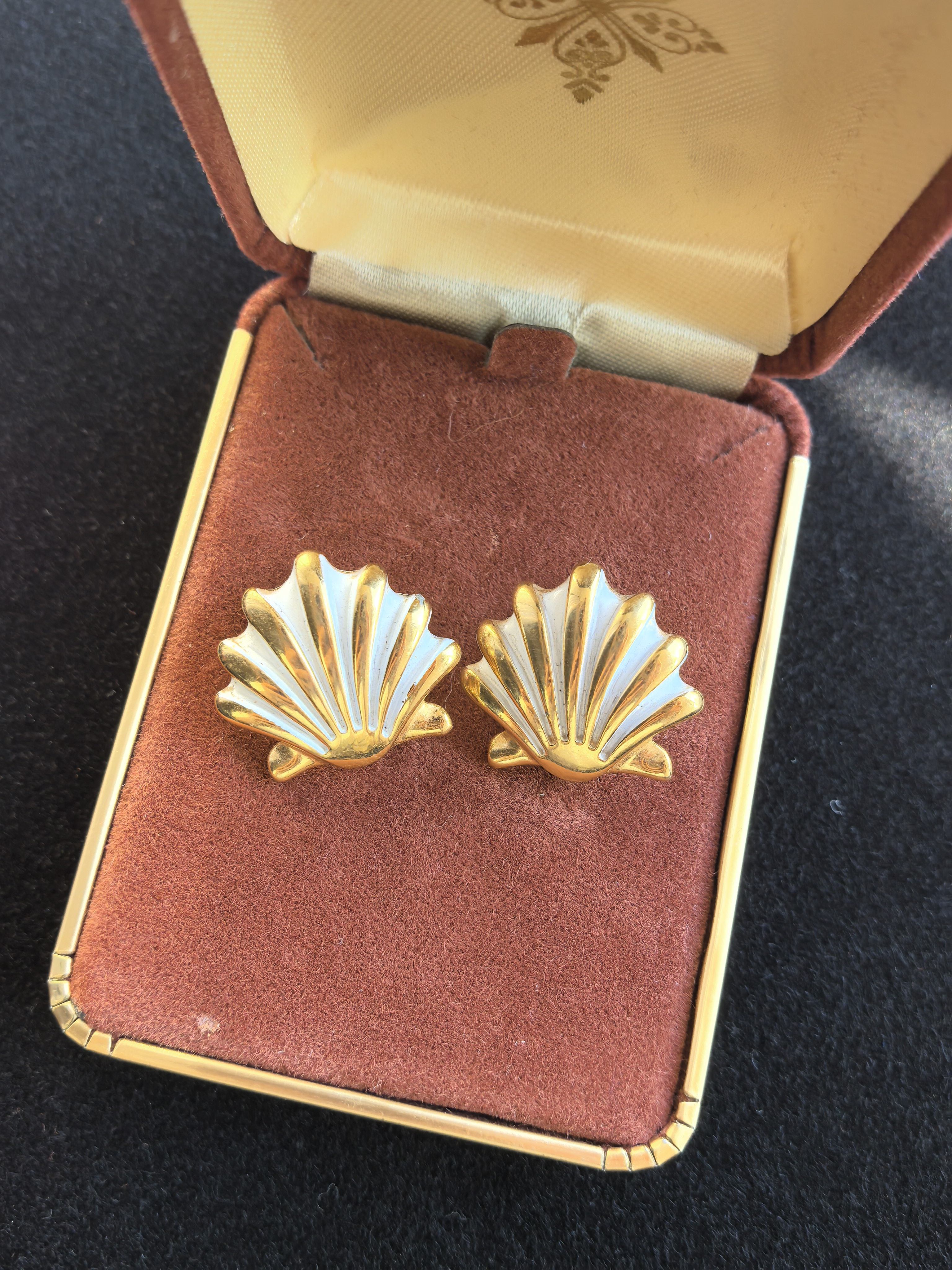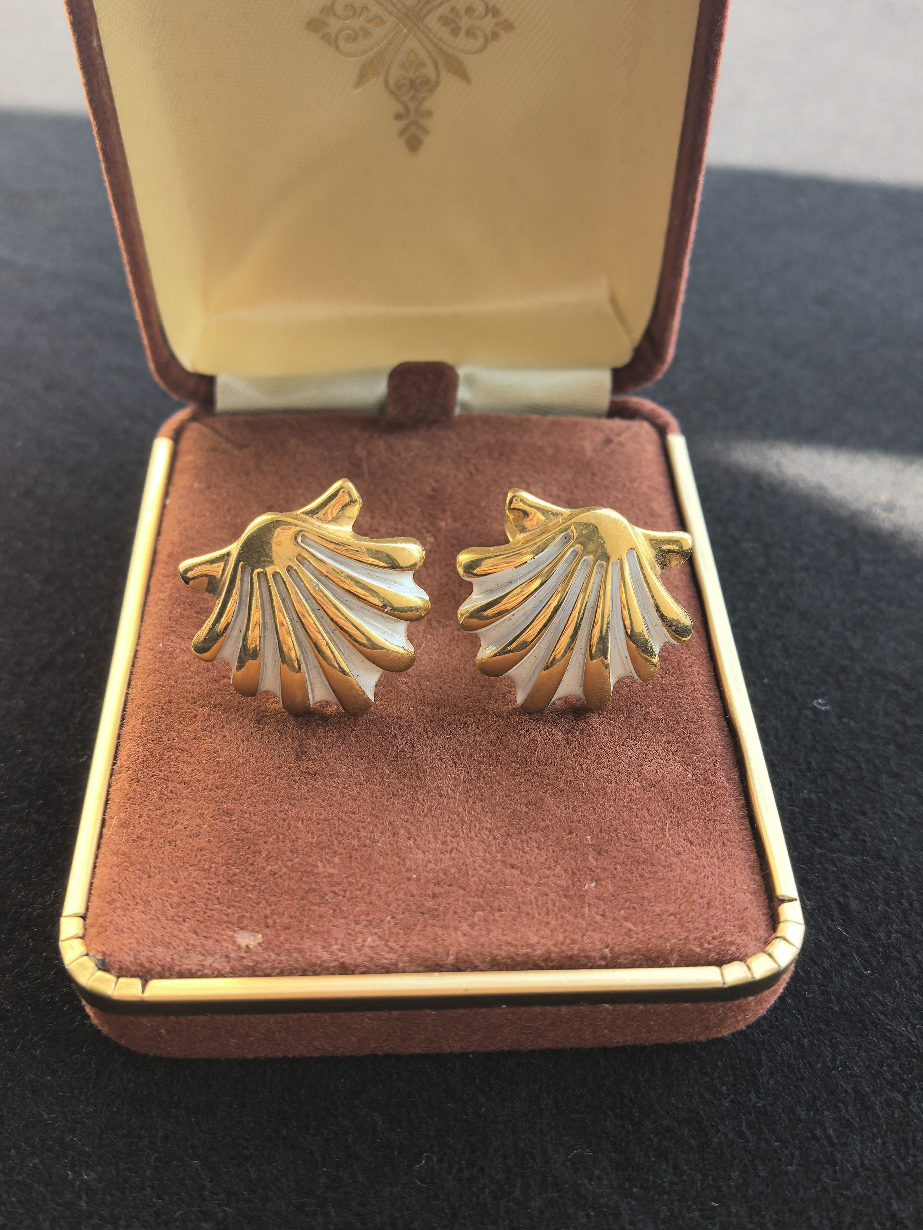 Monet素金珐琅贝壳耳夹精致OL通勤风耳夹中古Vintage - 萄萄中古首饰
